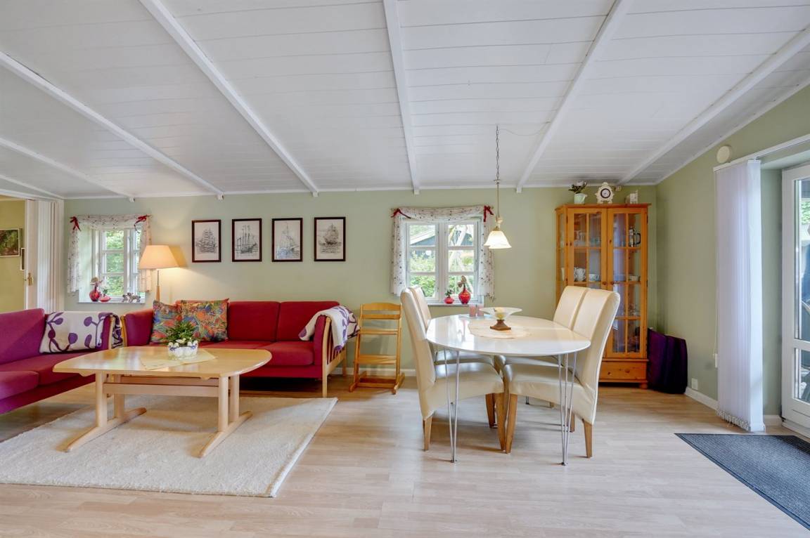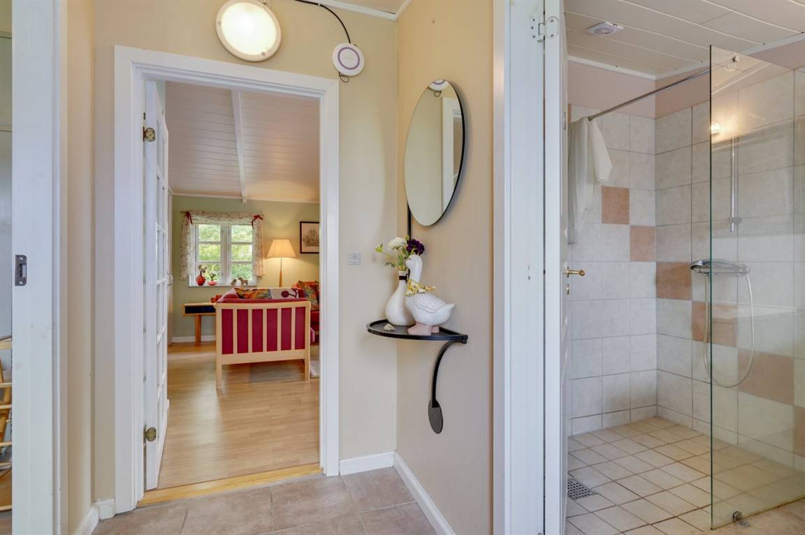 DraußenDie Ferienunterkunft liegt auf einem 600 m² großen Naturgrundstück. Das Grundstück ist eingezäunt. Die Entfernung zum Meer beträgt 7500 m. Die Entfernung zum Fjord beträgt 200 m. Die nächste Einkaufsmöglichkeit liegt 100 m entfernt. Es steht ein offenes Terrassenareal zur Verfügung. Außerdem gibt es überdachte Terrasse. Schaukel. Sandkasten. Parkplatz auf dem Grundstück.