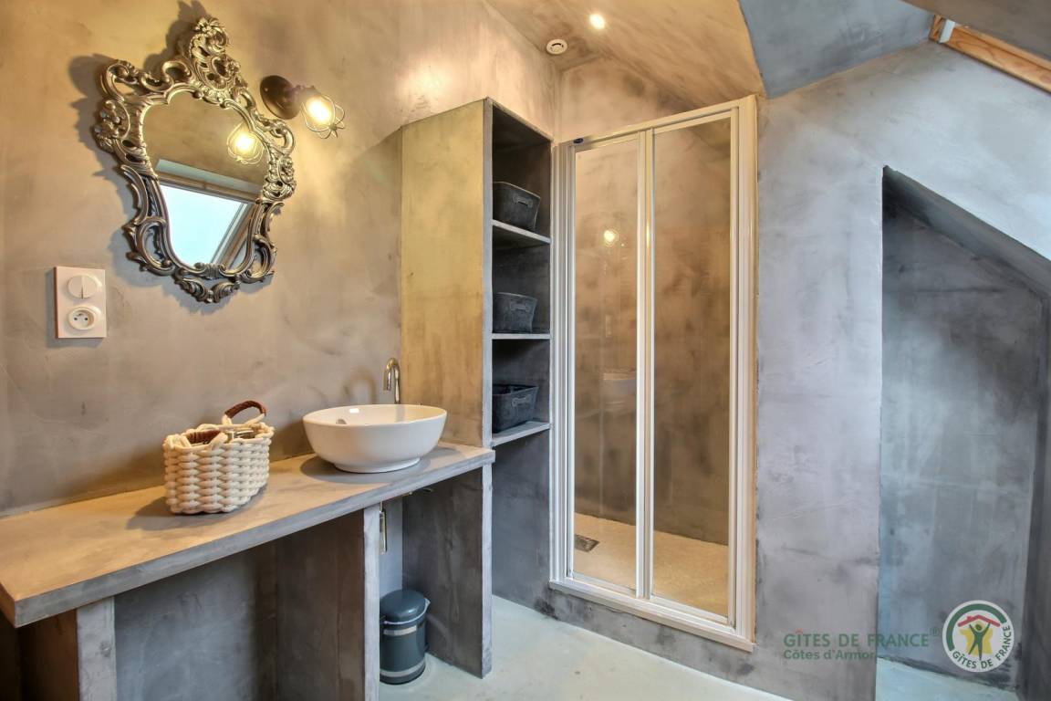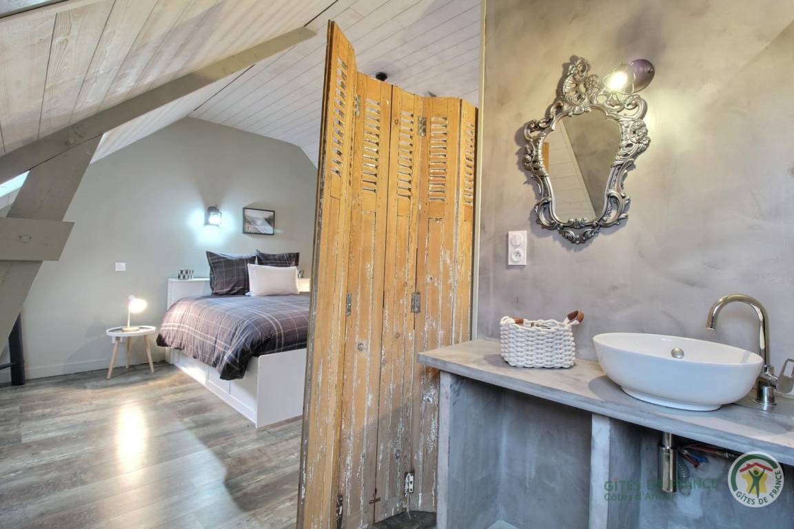 „Gîte très agréable avec terrasse et jacuzzi privatifs ainsi qu'un espace jeu en commun et buanderie avec les autres gîtes. Les hôtes sont accueillants et disponibles pour répondre aux questions. À 20min d'Erquy et Pleneuf Val André. Je recommande ce gîte“