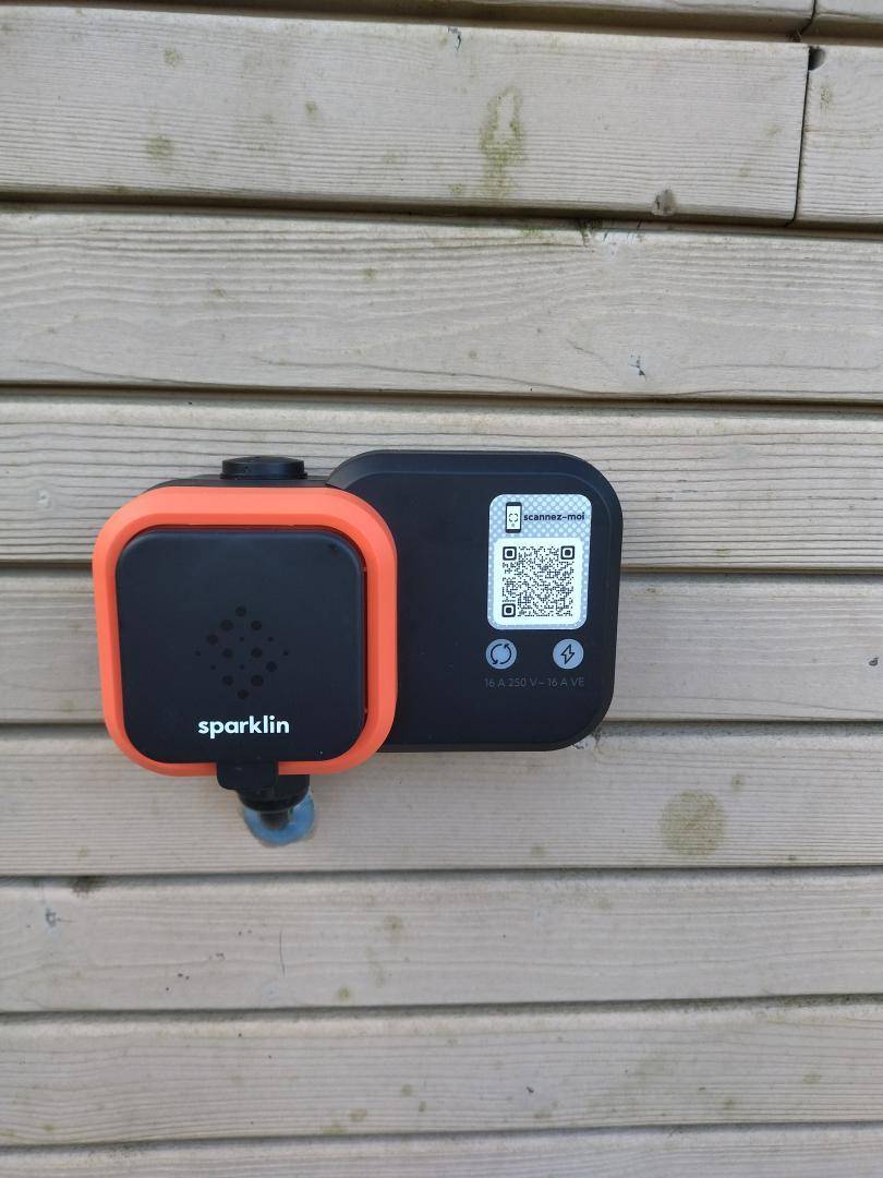 Eine Ladestation für Elektrofahrzeuge ist vorhanden; die Nutzung und Bezahlung erfolgen über die Sparklin-App.