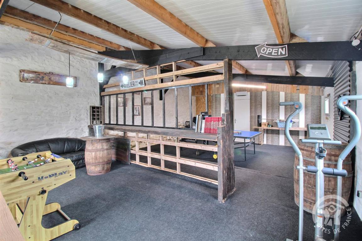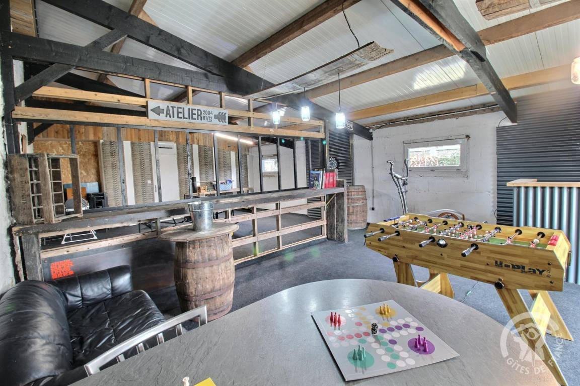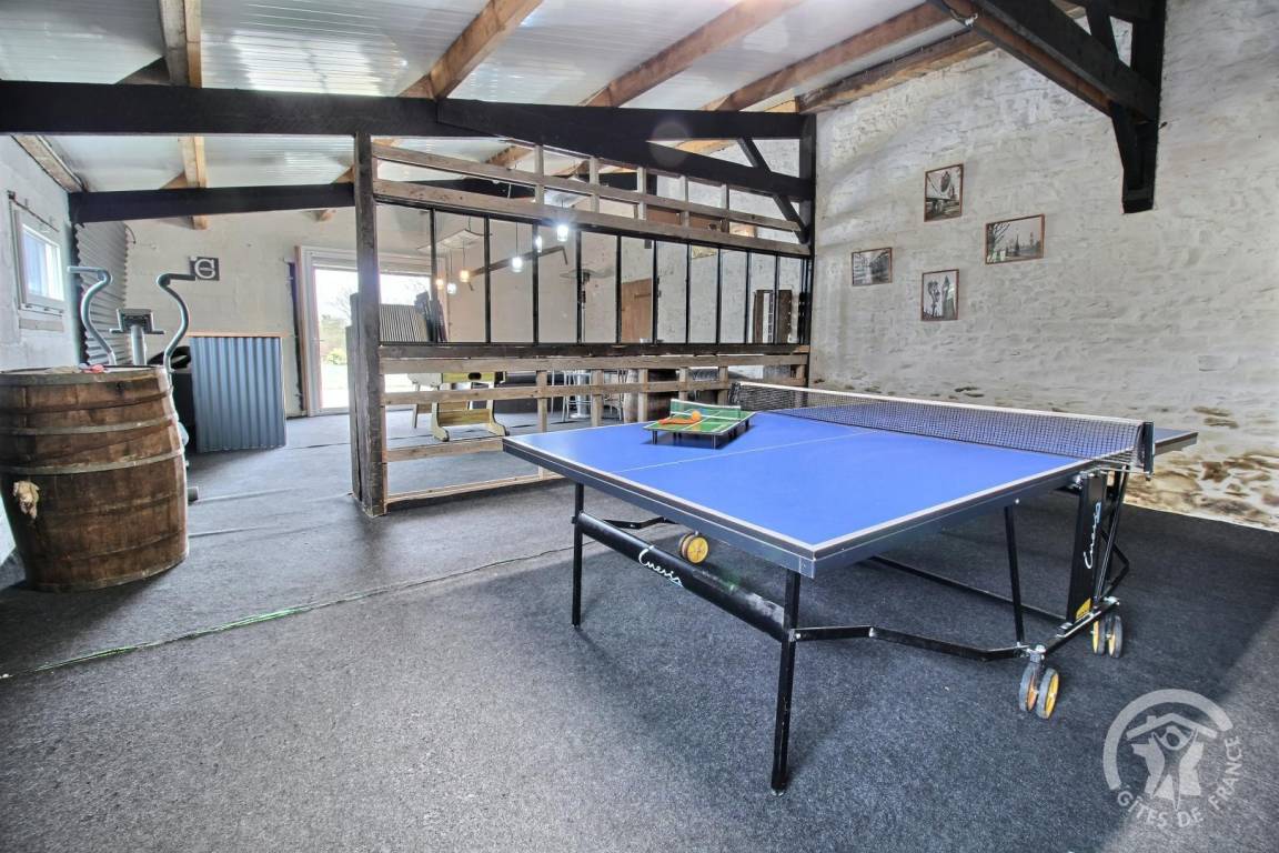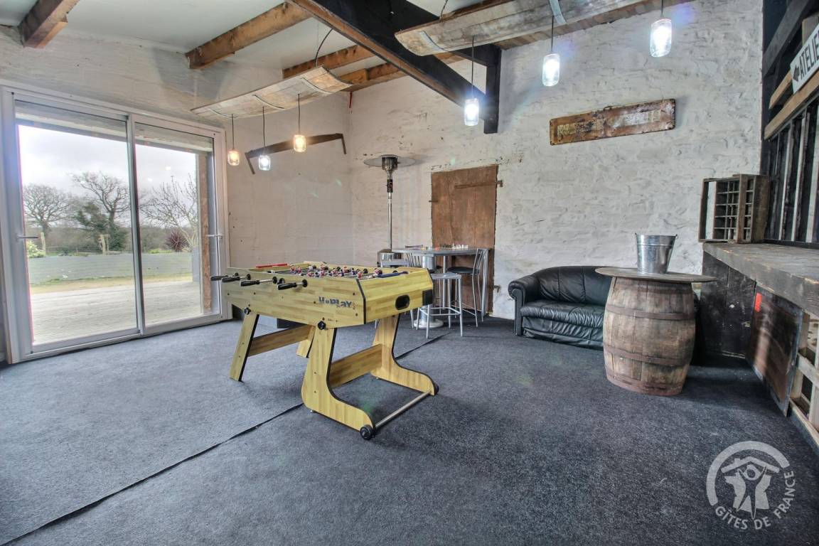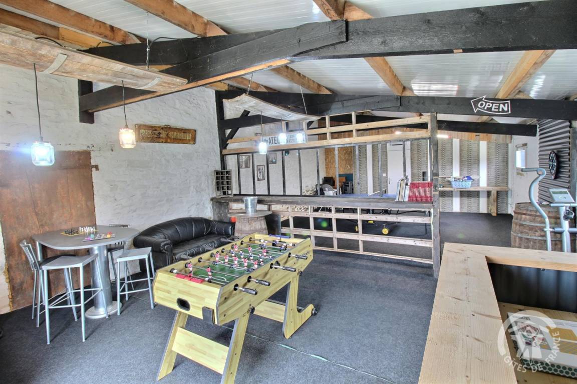 Eine 1300 m² große Rasenfläche und ein 70 m² großes Spielzimmer mit Tischfußball und Tischtennisplatte, einer Leseecke und einer Bibliothek, die Sie mit den beiden anderen Ferienhäusern teilen.