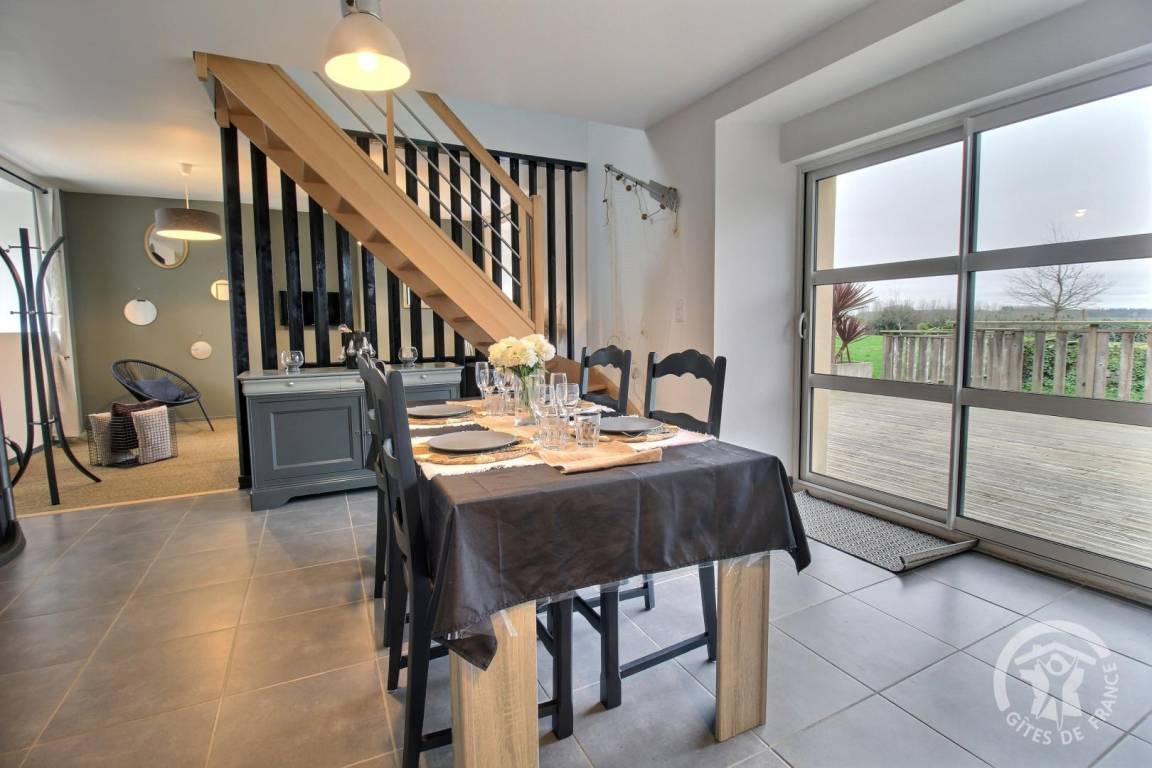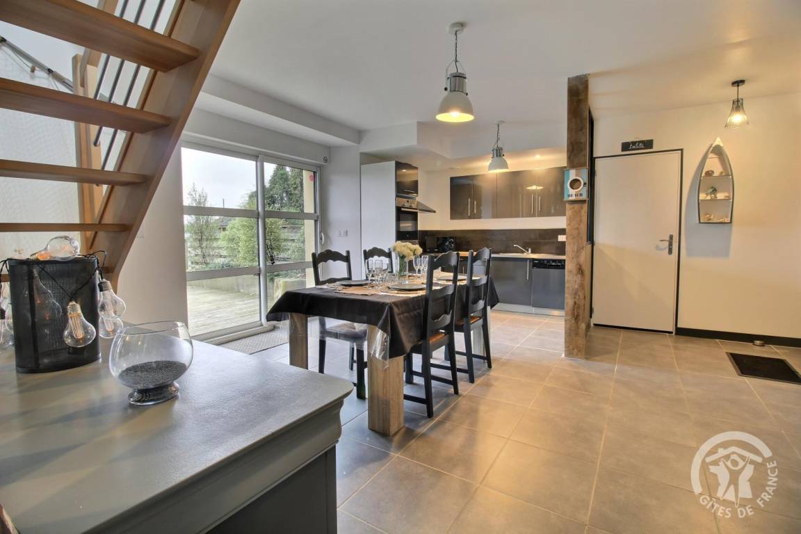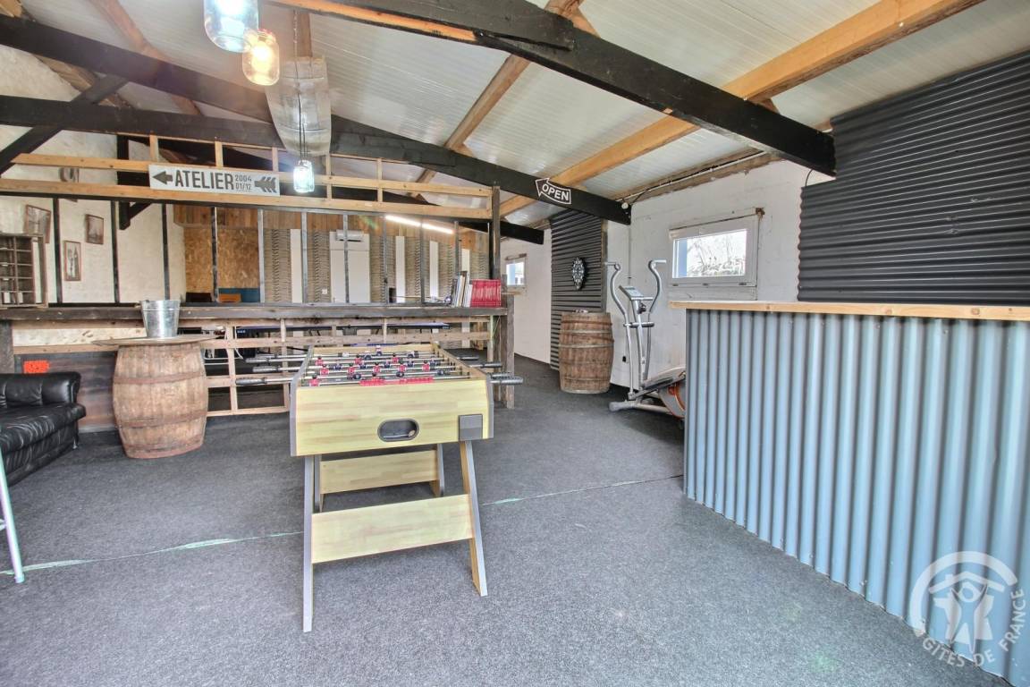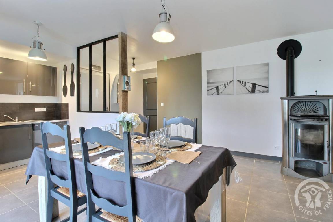 Ihre Ferienwohnung umfasst im Erdgeschoss: Wohnzimmer mit Einbauküche, separates WC. Etage: großer Flur, 2 Schlafzimmer (1 Bett 140x190) (2 Einzelbetten), Badezimmer mit großer Dusche, separates WC. Gemeinsamer Waschraum. Private Terrasse von 25 m², Rasenfläche von 1300 m² sowie ein Spielzimmer von 70 m² mit Babyfußball und Tischtennis, Leseecke und Bibliothek zur gemeinsamen Nutzung mit den 2 anderen Gîtes. Großer gemeinsamer Innenhof von 1500 m² inklusive Parkplatz und Spielplatz: Fußballtore, Basketballkorb, Volleyball, Bowling und Molkky-Spiele. Ihnen steht eine Ladestation für Elektrofahrzeuge zur Verfügung, deren Nutzung und Bezahlung erfolgt über die Sparklin-Anwendung.