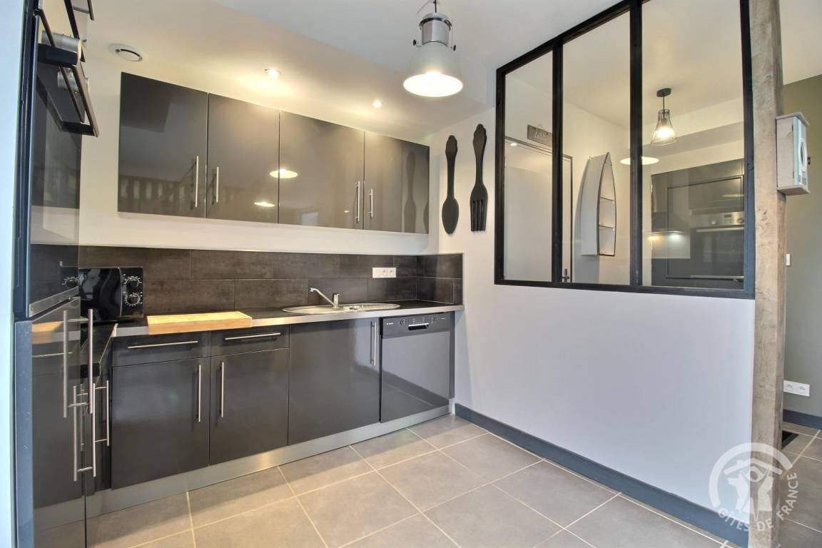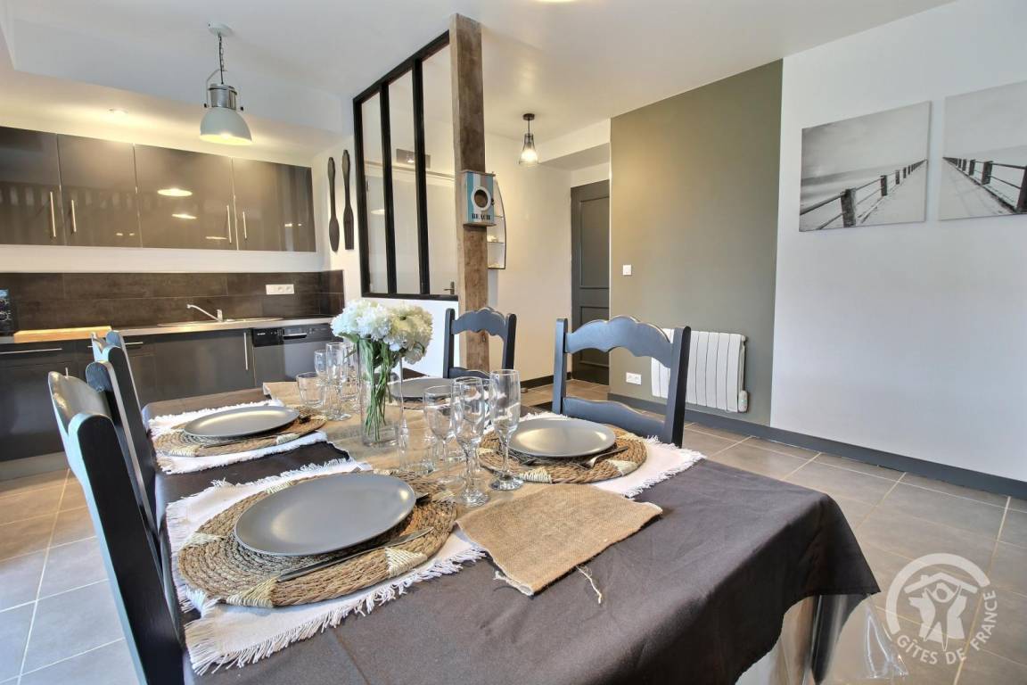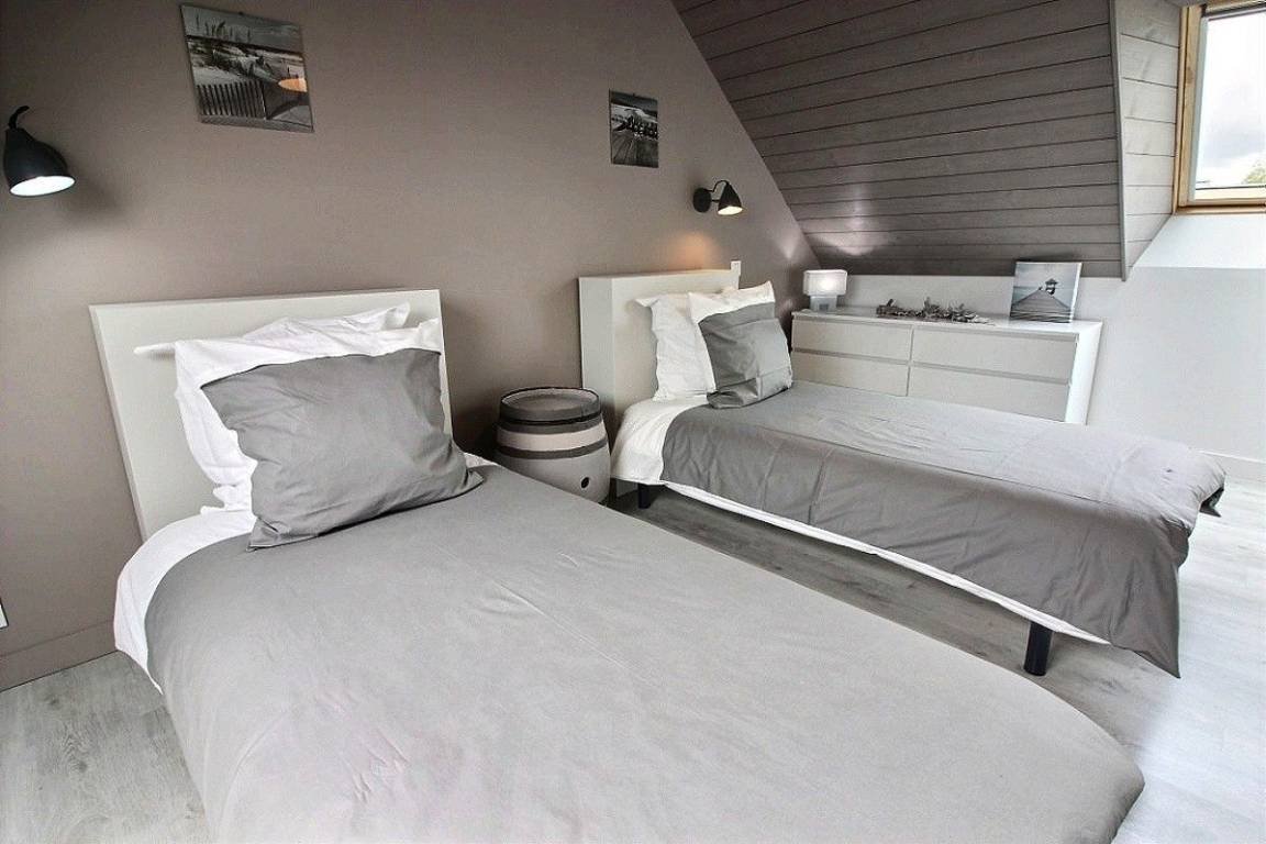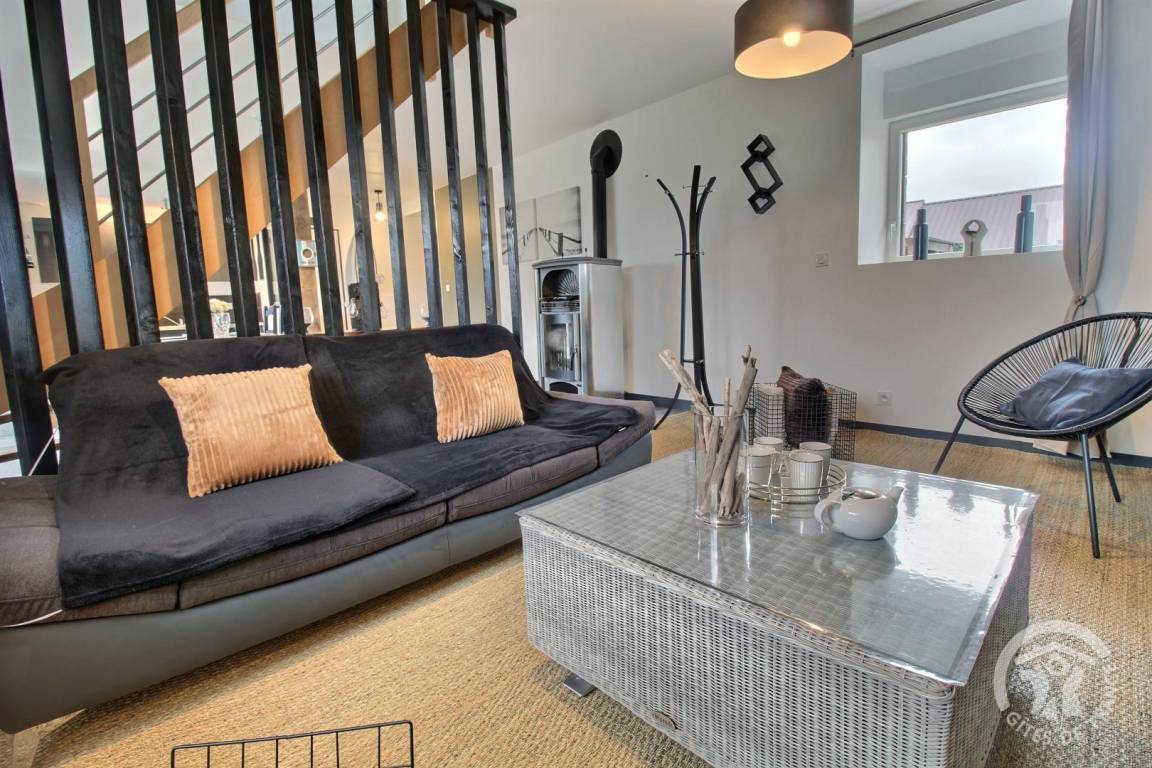Ihre Ferienwohnung umfasst im Erdgeschoss: Wohnzimmer mit Einbauküche, separates WC. Etage: großer Flur, 2 Schlafzimmer (1 Bett 140x190) (2 Einzelbetten), Badezimmer mit großer Dusche, separates WC. Gemeinsamer Waschraum. Private Terrasse von 25 m², Rasenfläche von 1300 m² sowie ein Spielzimmer von 70 m² mit Babyfußball und Tischtennis, Leseecke und Bibliothek zur gemeinsamen Nutzung mit den 2 anderen Gîtes. Großer gemeinsamer Innenhof von 1500 m² inklusive Parkplatz und Spielplatz: Fußballtore, Basketballkorb, Volleyball, Bowling und Molkky-Spiele. Ihnen steht eine Ladestation für Elektrofahrzeuge zur Verfügung, deren Nutzung und Bezahlung erfolgt über die Sparklin-Anwendung.