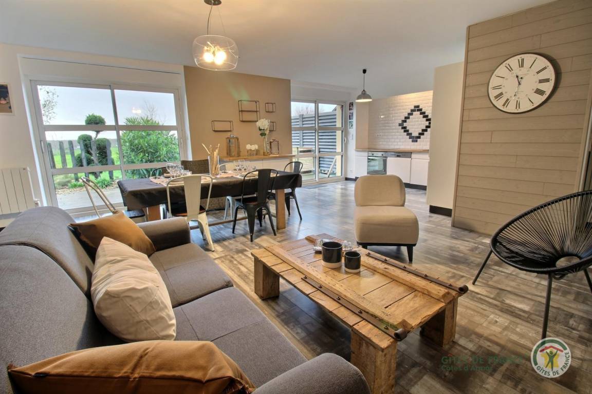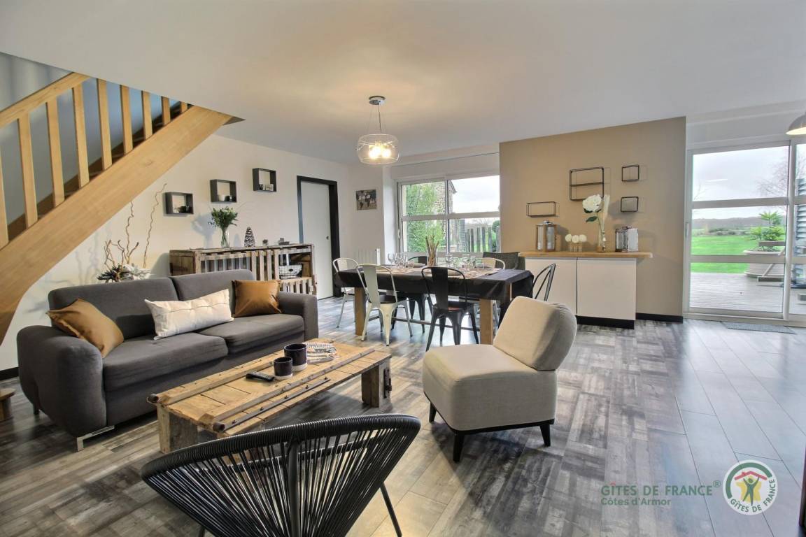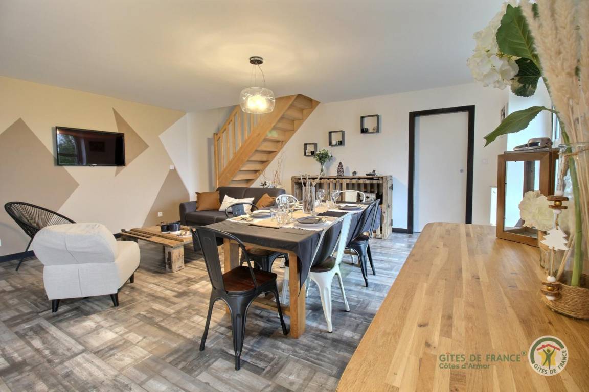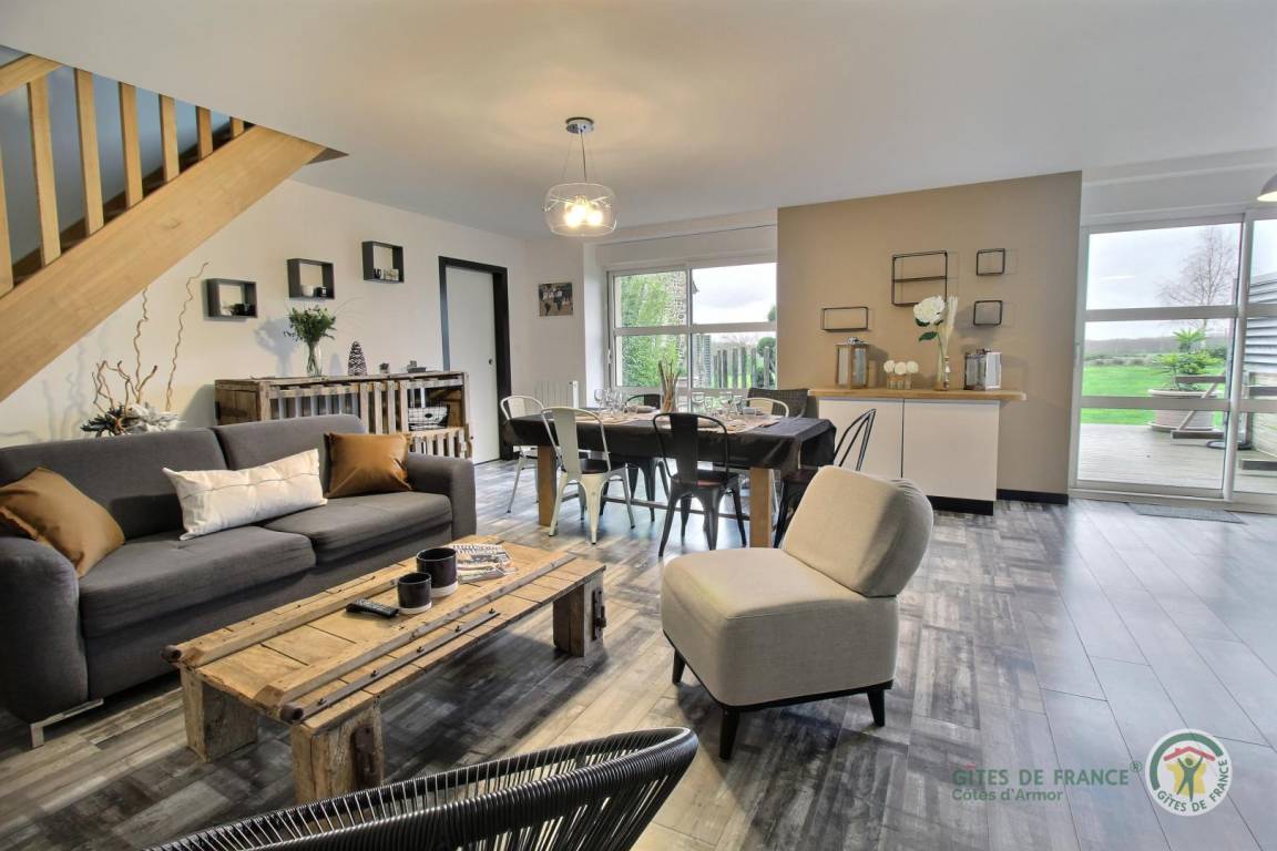 Auf einem 6000 m² großen Grundstück im Grünen befindet sich ein großes Bauernhaus aus Stein, bestehend aus 4 renovierten, angrenzenden Gîtes im modernen und trendigen Stil. Ein erholsamer und sehr angenehmer Urlaubsort, um die Côtes de Penthièvre und die Smaragdküste mit ihren wunderschönen Stränden und berühmten Badeorten zu entdecken: Sables d'Or les Pins, Fréhel, St. Cast le Guildo. Aber Sie werden es auch genießen, vor Ort zu bleiben und zu entspannen und die gut ausgestatteten privaten Terrassen und den Sandspielplatz zu nutzen, wo jeder die Aktivität seiner Wahl ausüben kann, zwischen Volleyball oder einer Partie Fußball ... Matignon 10 km entfernt, Sables d'Or les Pins 19 km, Lamballe 15 km.