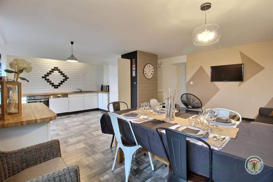 Ihre Ferienwohnung umfasst im Erdgeschoss und auf einer Ebene: Wohnzimmer, Wohnzimmer mit Einbauküche, separates WC, ein geräumiges Schlafzimmer (1 Doppelbett 160X200) mit angrenzendem Privatbad. Das Plus dieses Ferienhauses: ein privater JACUZZI, der vom Schlafzimmer aus zugänglich ist, mit seiner schönen privaten Holzterrasse von 40 m²: Entspannung ist garantiert, während Sie die Rasenfläche von 1300 m² genießen, sowie ein Spielzimmer von 70 m² mit Babyfußball und Tischtennis, Leseecke und Bibliothek zur gemeinsamen Nutzung mit den beiden anderen Unterkünften. Gemeinsamer Waschraum. Großer gemeinsamer Innenhof von 1500 m² inklusive Parkplatz und Sandspielplatz mit: Fußballtoren, Basketballkorb, Volleyball, Bowling und Molkky-Spielen.