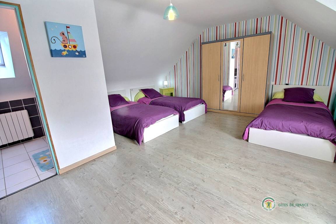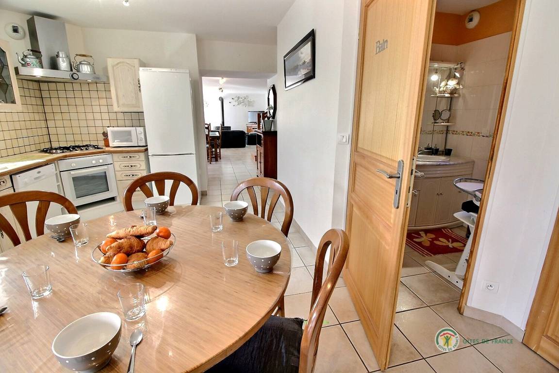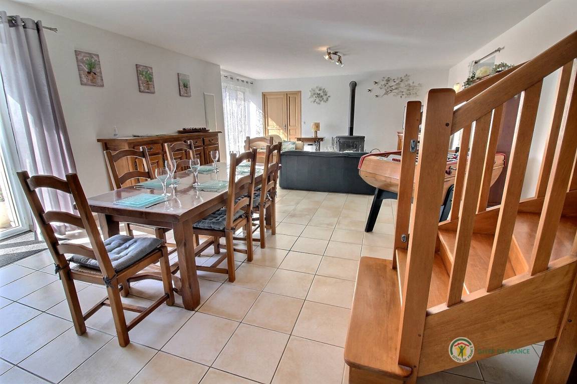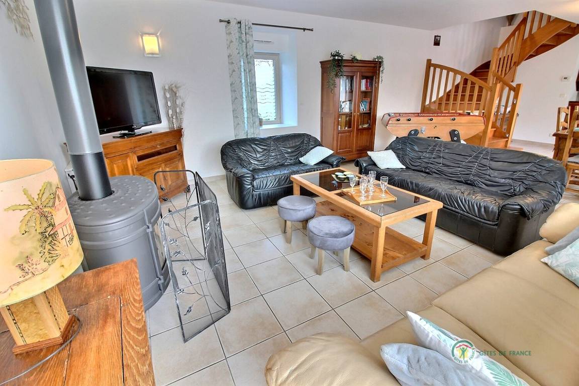 Ihre Ferienwohnung umfasst im Erdgeschoss: eine voll ausgestattete Küche mit Hochstuhl für Babys, ein großes Wohnzimmer mit Holzofen, WC, ein Badezimmer. Im Obergeschoss 3 Schlafzimmer: eines für Kinder mit 3 Betten (90X200), Spielzeug, ein Badezimmer mit Badewanne und Badewannenausstattung für Babys. Ein Schlafzimmer mit 140X200 Bett und ein Schlafzimmer mit 140X190 Bett, ein Badezimmer und eine Toilette. Dieses Ferienhaus ist ideal für eine Familie mit Kindern und Babys. Möglichkeit der Bereitstellung eines Kinderwagens und eines Parks.