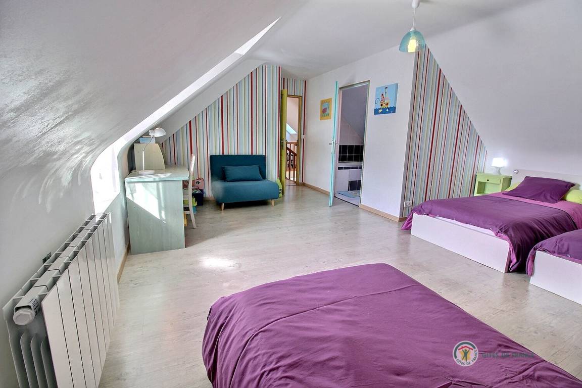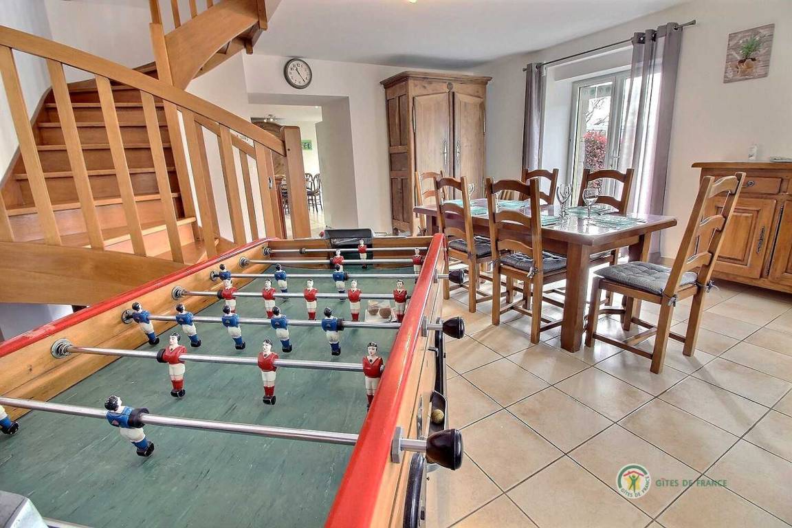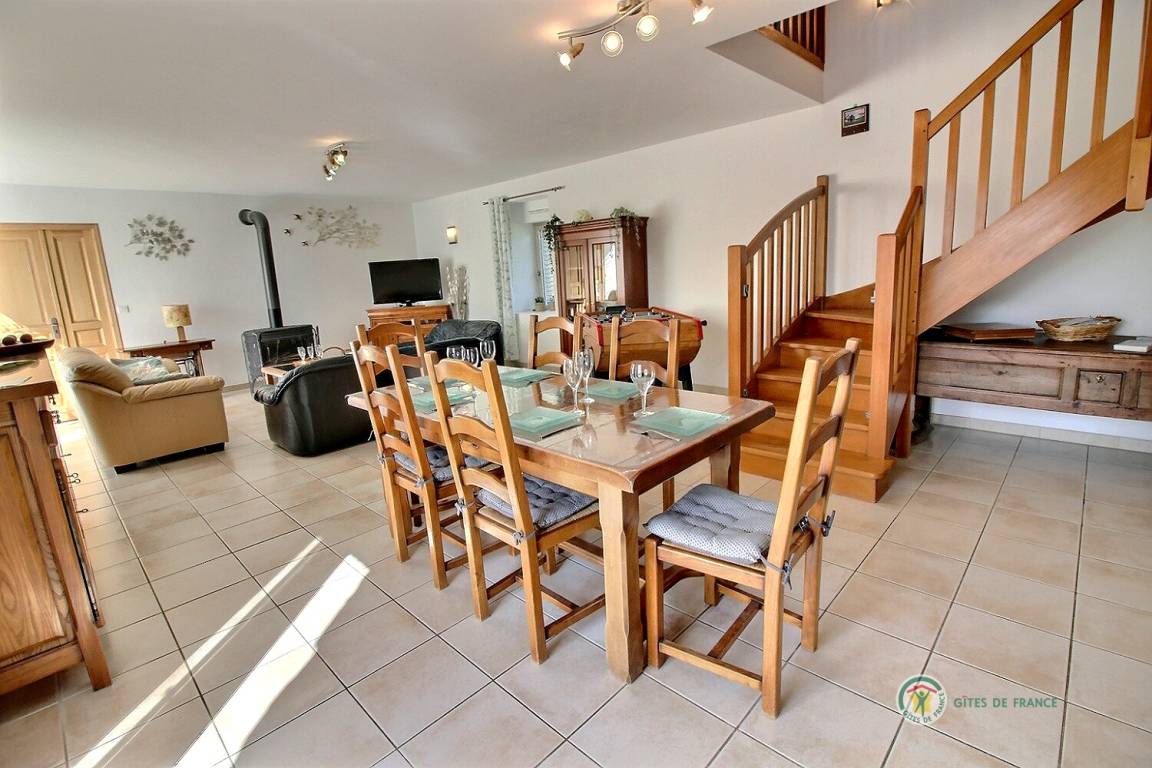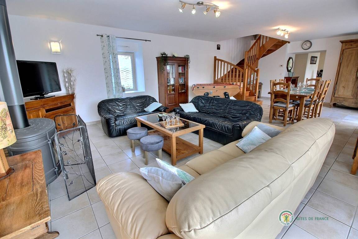 Ihre Ferienwohnung umfasst im Erdgeschoss: eine voll ausgestattete Küche mit Hochstuhl für Babys, ein großes Wohnzimmer mit Holzofen, WC, ein Badezimmer. Im Obergeschoss 3 Schlafzimmer: eines für Kinder mit 3 Betten (90X200), Spielzeug, ein Badezimmer mit Badewanne und Badewannenausstattung für Babys. Ein Schlafzimmer mit 140X200 Bett und ein Schlafzimmer mit 140X190 Bett, ein Badezimmer und eine Toilette. Dieses Ferienhaus ist ideal für eine Familie mit Kindern und Babys. Möglichkeit der Bereitstellung eines Kinderwagens und eines Parks.