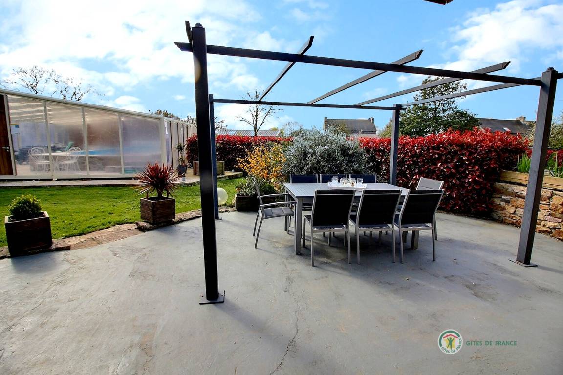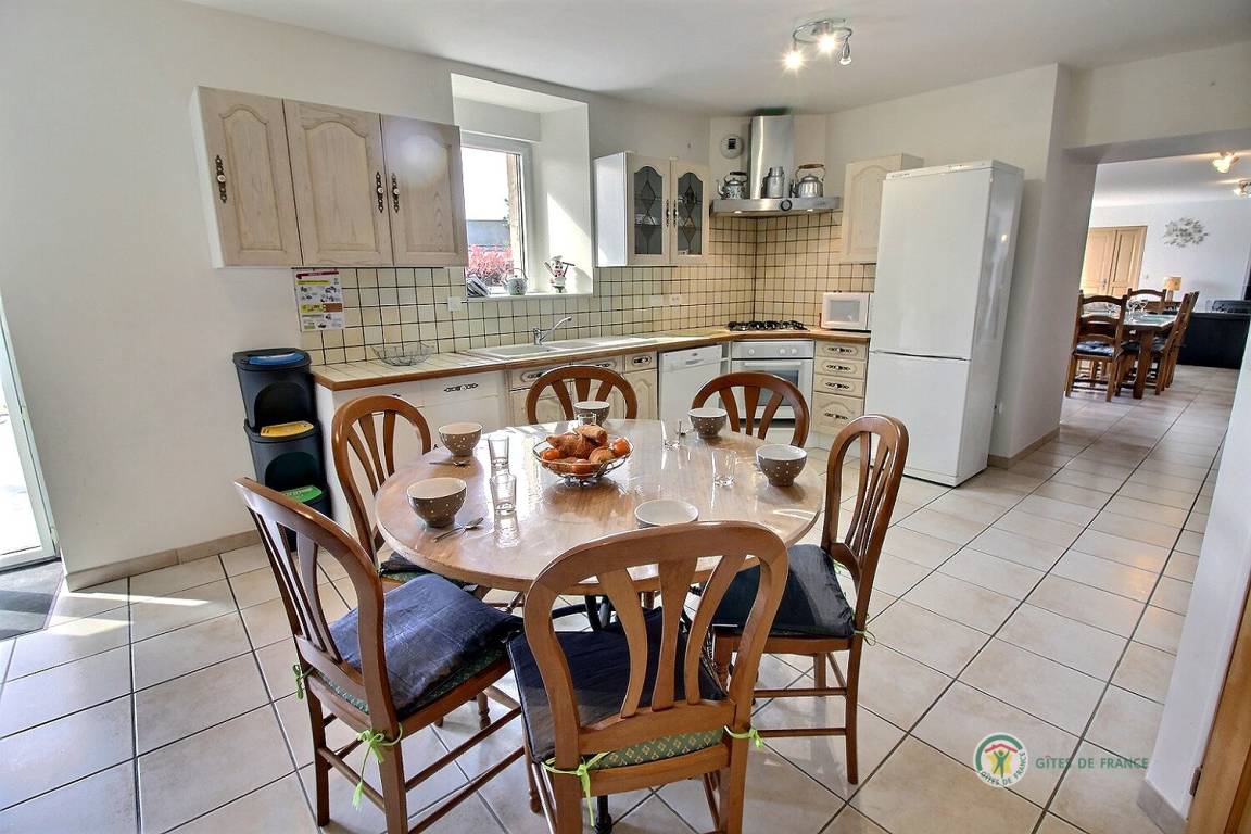„Séjour très agréable. Gite spacieux en tous points conforme à la description, très bien situé pour sillonner la région. Rien ne manque, tranquillité, calme, espace, confort avec une belle piscine couverte qui apporte un plus en cas de temps mitigé (très rare en Bretagne !) Accueil très courtois des propriétaires avec de petites attentions à l'arrivée et en cours de séjour très appréciées. Nous recommandons sans réserve cette destination.“