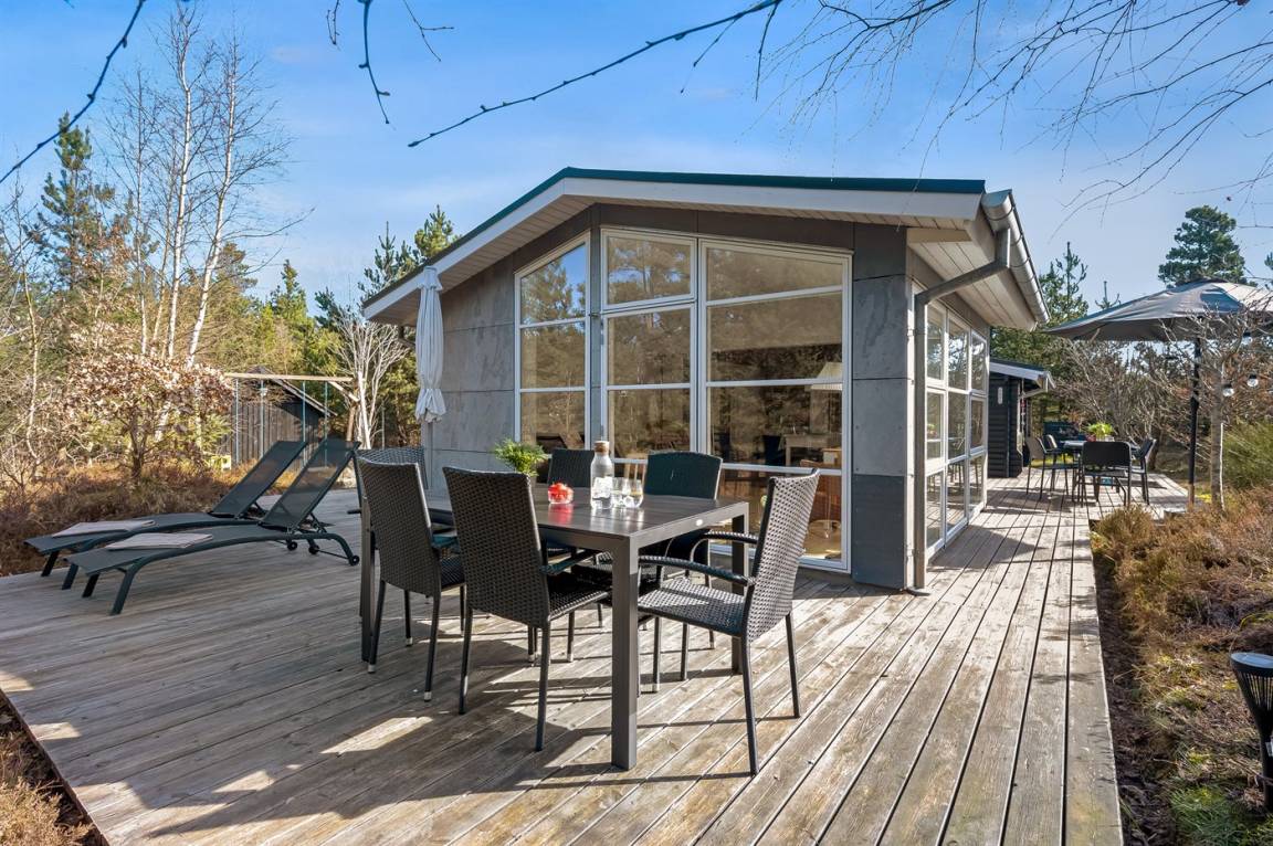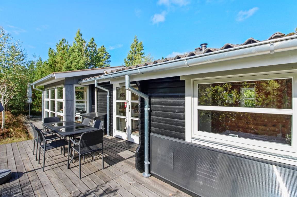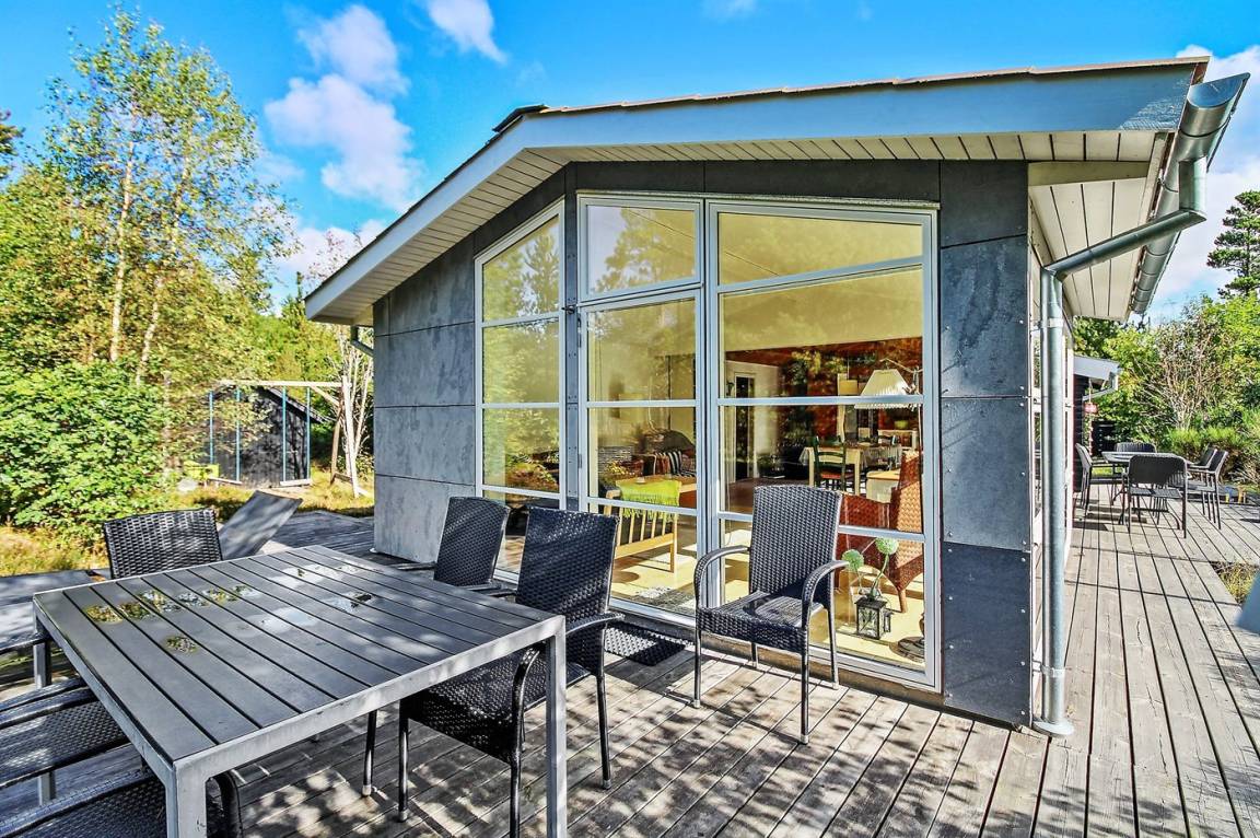 Ein schönes Ferienhaus auf einem großen Naturgrundstück gelegen. Zum Haus gehören mehrere offene Terrassen und Gartenmöbel. Das gut gelegene Ferienhaus ist ein guter Ausgangspunkt für einen erholsamen Urlaub.