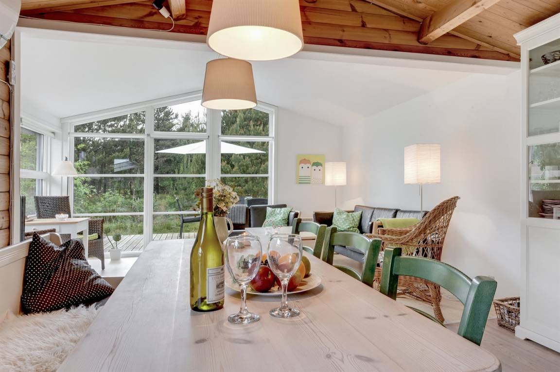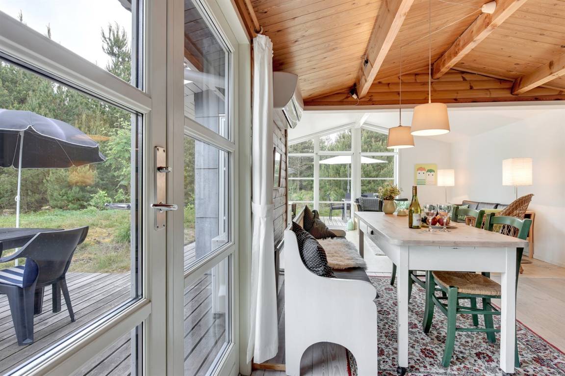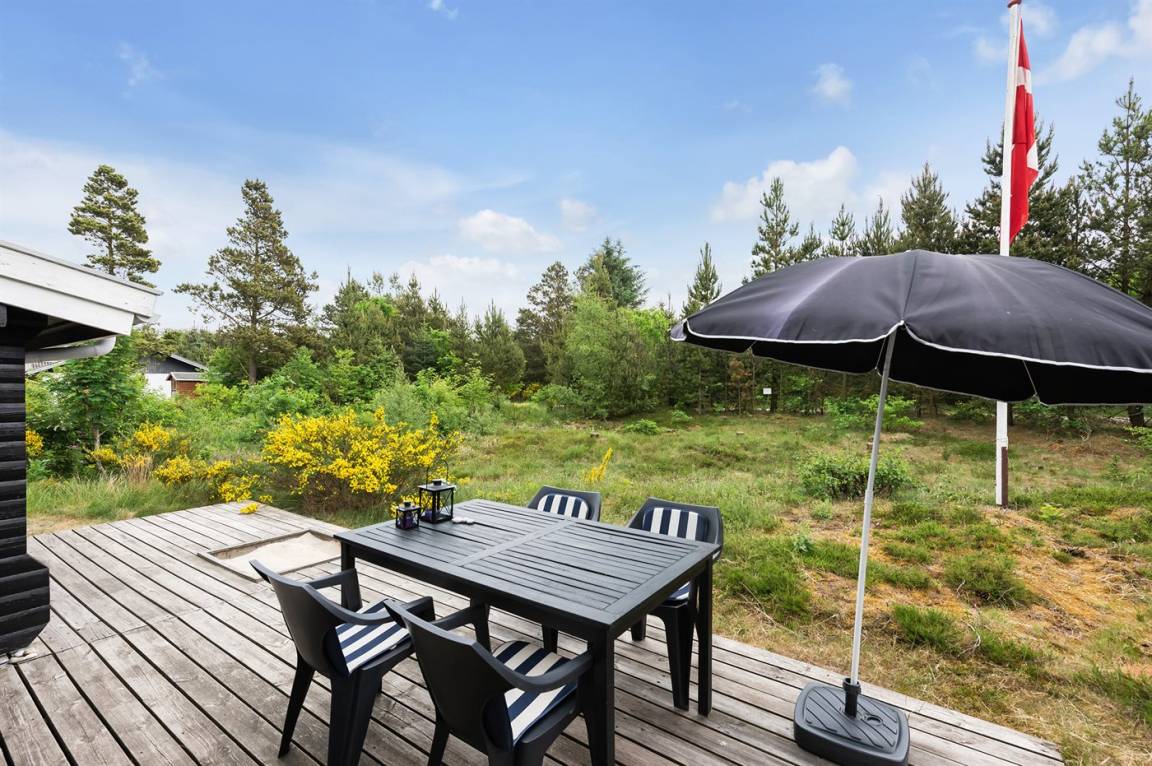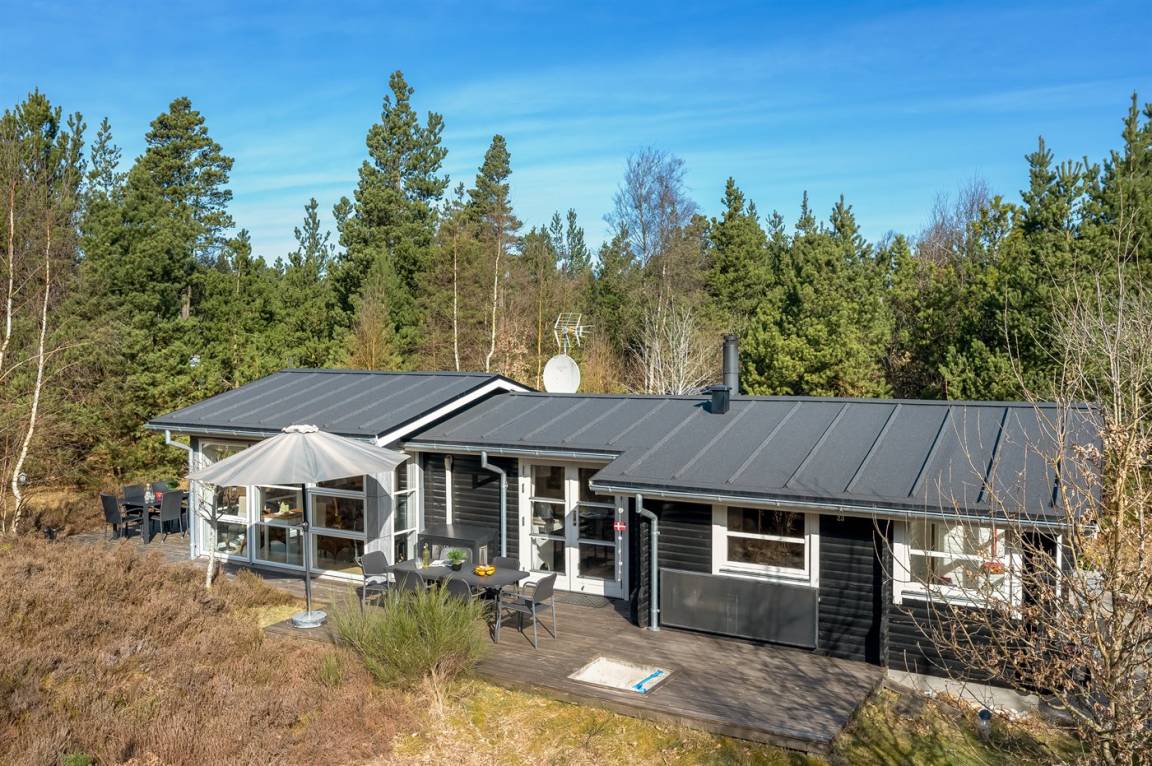 Ein schönes Ferienhaus auf einem großen Naturgrundstück gelegen. Zum Haus gehören mehrere offene Terrassen und Gartenmöbel. Das gut gelegene Ferienhaus ist ein guter Ausgangspunkt für einen erholsamen Urlaub.
