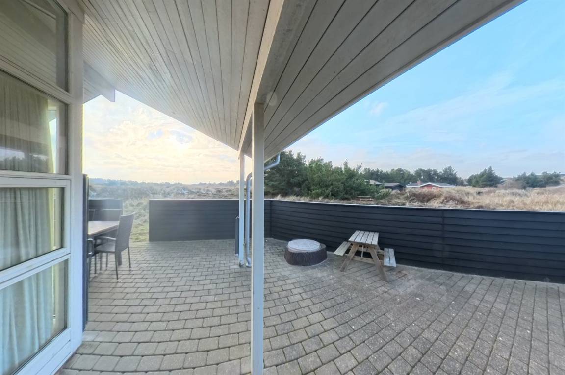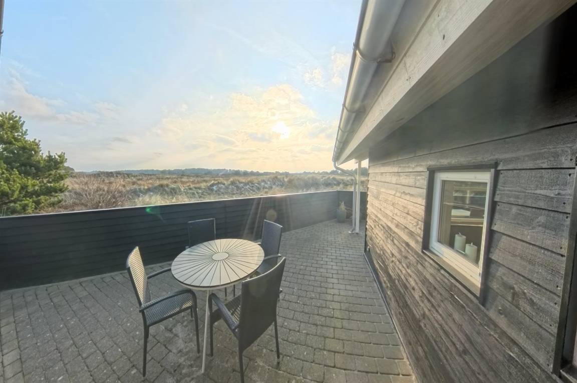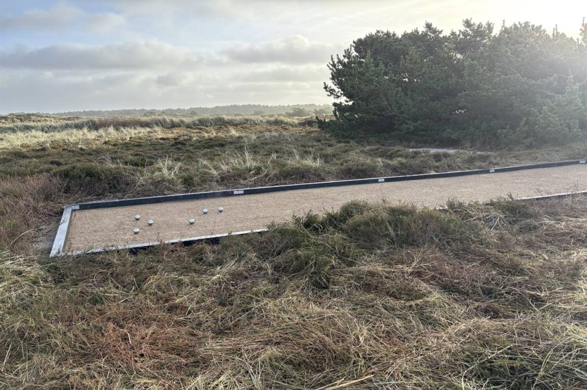 Im Außenbereich findet ihr sowohl offene als auch überdachte, eingezäunte Terrassen mit mehreren schönen Sitzplätzen für die Mahlzeiten des Tages und entspannte Pausen – alle mit herrlichem Blick über die Umgebung. In der Nähe der Terrasse liegt die hauseigene Pétanquebahn, die ganz natürlich die Familie zu gemütlichen Turnieren und gemeinsamen Stunden im Freien versammelt. Gleichzeitig lädt die Umgebung rund um das Haus zu ruhige Spaziergänge auf den Pfaden die durch die Dünen führen ein.