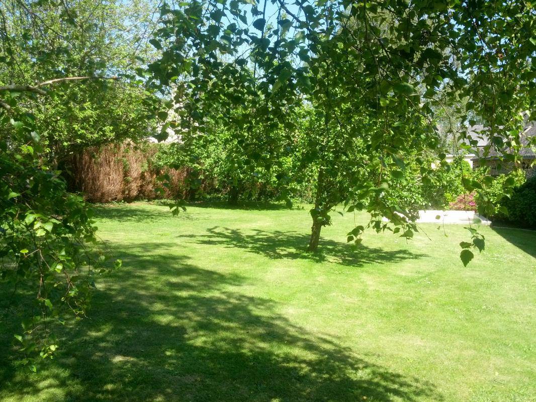 Privater offener Garten von 700 m² mit Terrasse, Gartenmöbeln und Grill.