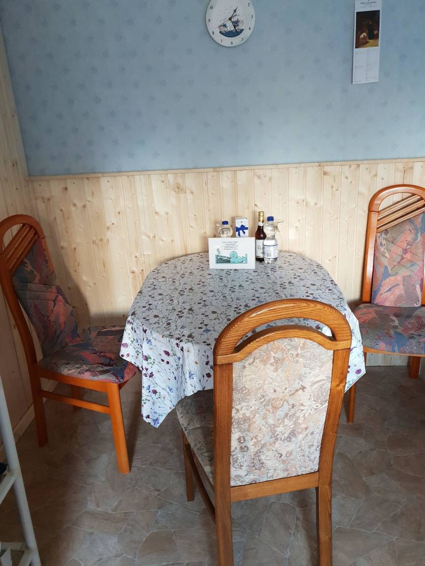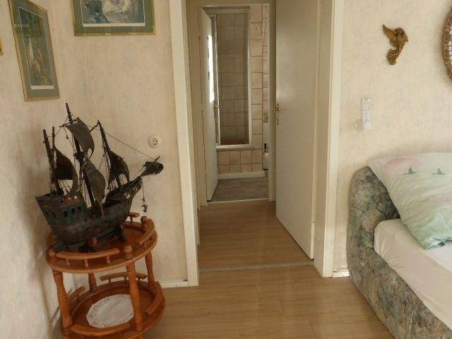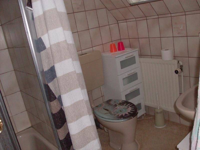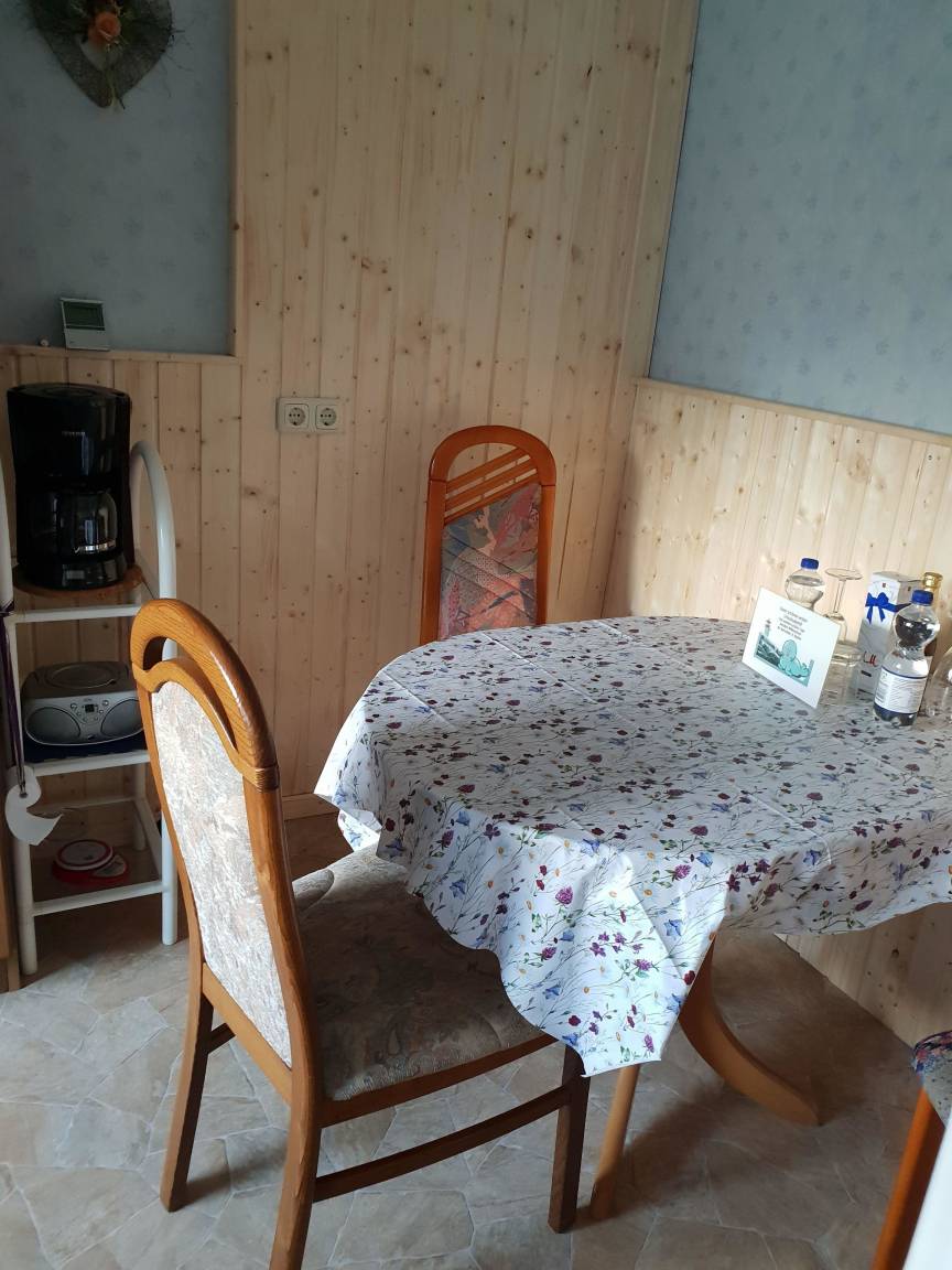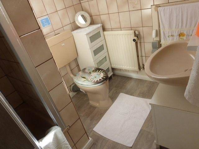 Die Wohnstube Ist hell und freundlich (Laminat Fussboden) eingerichtet.MIt anschließenden Balkon, nach vorn zur Straßenseite. Zwei Schlafzimmer .( Laminat Fussboden )Ein Schlafzimmer nach der Seite des Hauses mit zwei Einzelbetten. Das andere Schlafzimmer, nach hinten zum Garten gelegen mit einer Französichen Liege (1,60/2,00m). Eine Complett eingerichtete Küche mit Tisch und 4 Stühlen, (FUßboden ist mit PVC ausgelegt.) Und ein Duschbad mit WC und Waschbecken. Auch dieser Fußboden ist mit PVC ausgelegt. Das Wlan ist kostenlos.