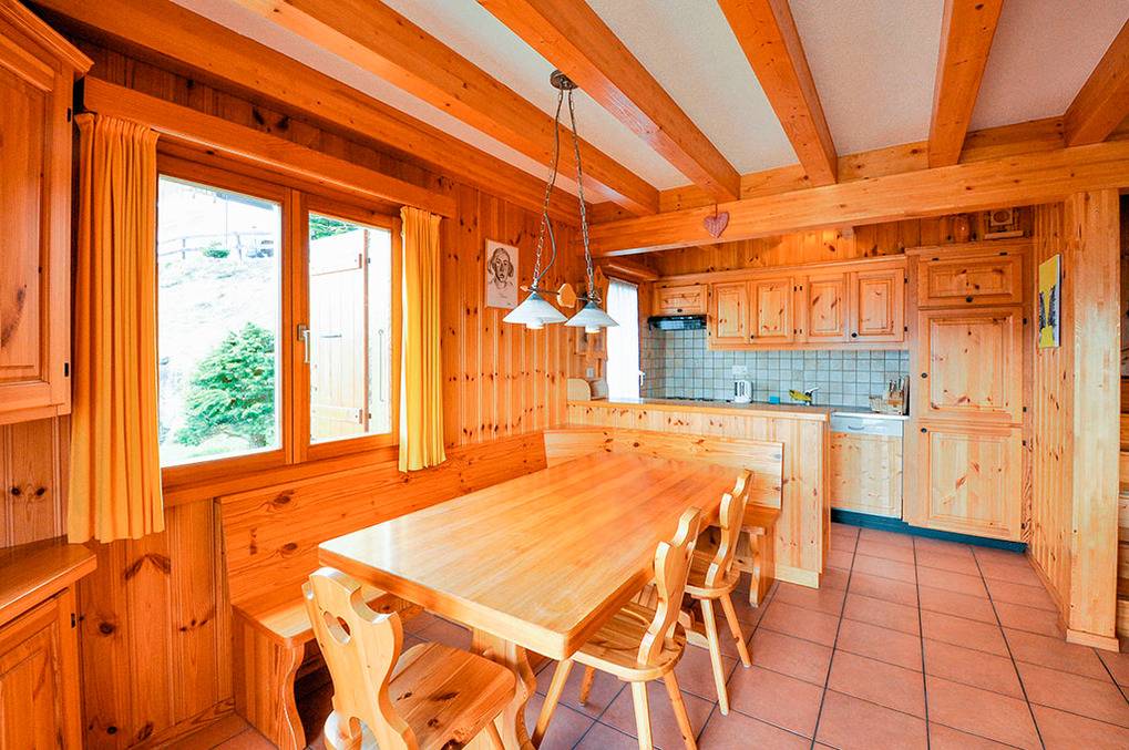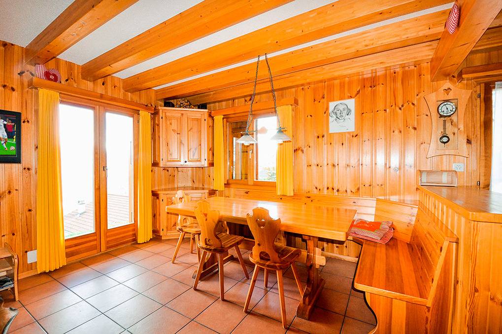 Haus: Schönes Chalet mit Kamin und Internet. 5-Zimmerhaus mit 120 qm Wohnfläche über 2 Etagen. Geschmackvolle, moderne Einrichtung, typisches Chalet-Flair mit schöner Holzvertäfelung im ganzen Haus. Internetzugang über W-Lan. Waschmaschine, Trockner. Zentralheizung. Nichtraucherhaus. Balkon, Süd-Terrasse mit Sitzmöbeln.