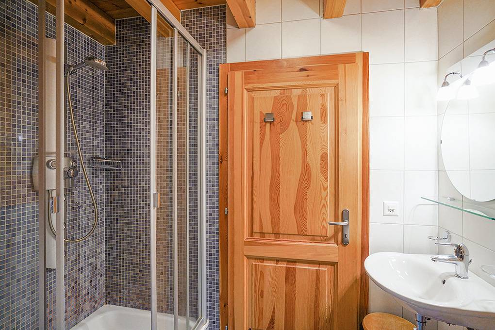 1. Etage: Doppelzimmer mit Balkon. Doppelzimmer mit franz. Bett, Balkon. 2-Bettzimmer. 3-Bettzimmer (Dachschrägen, max. 1,70 m Stehhöhe). Bad: Whirlpool-Badewanne, Waschbecken, WC.