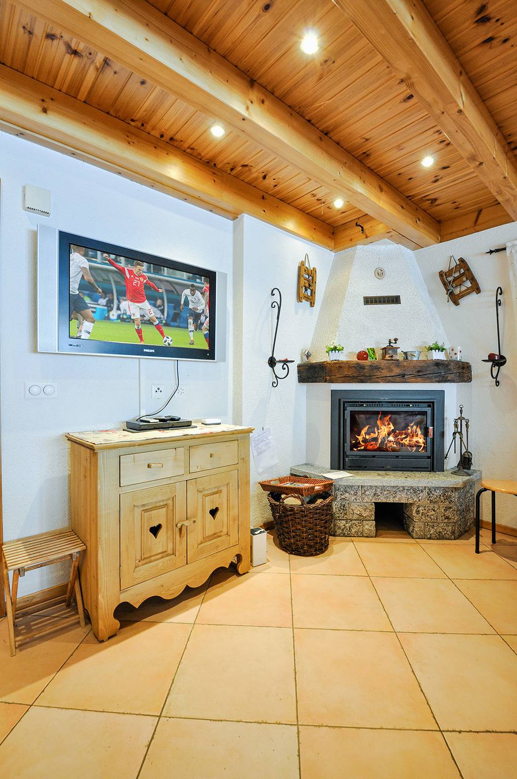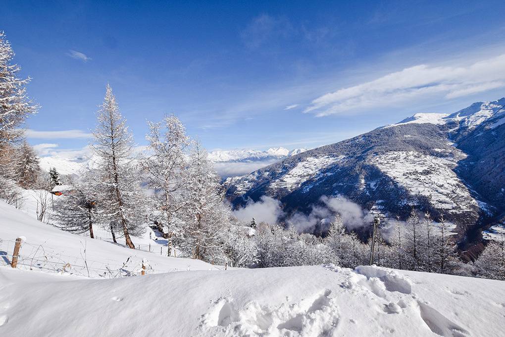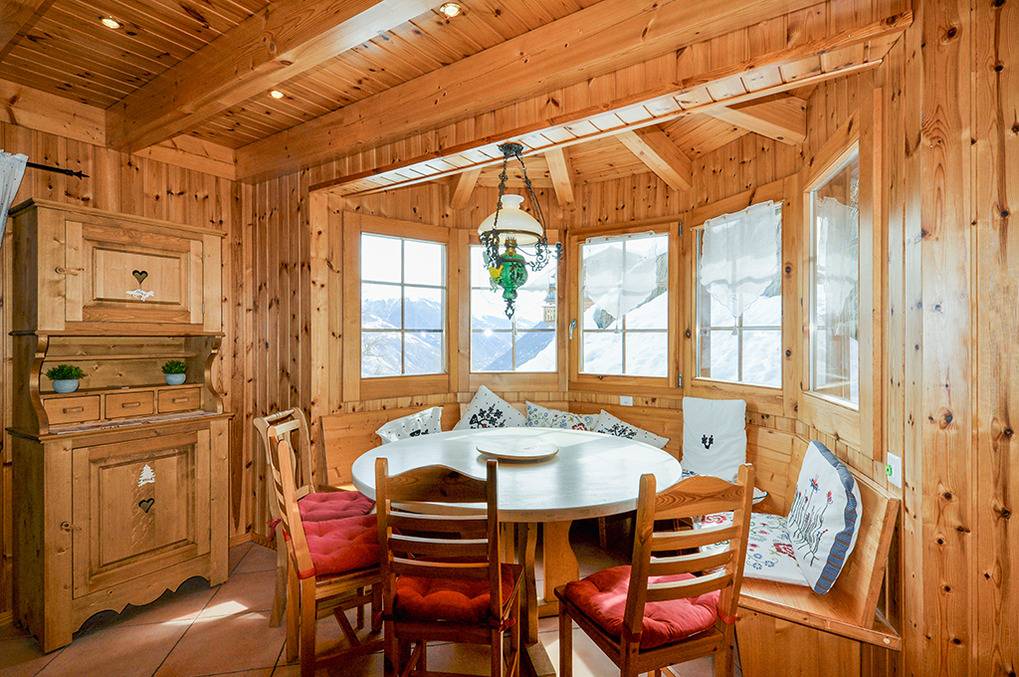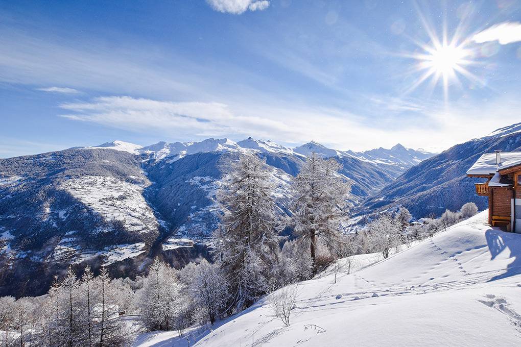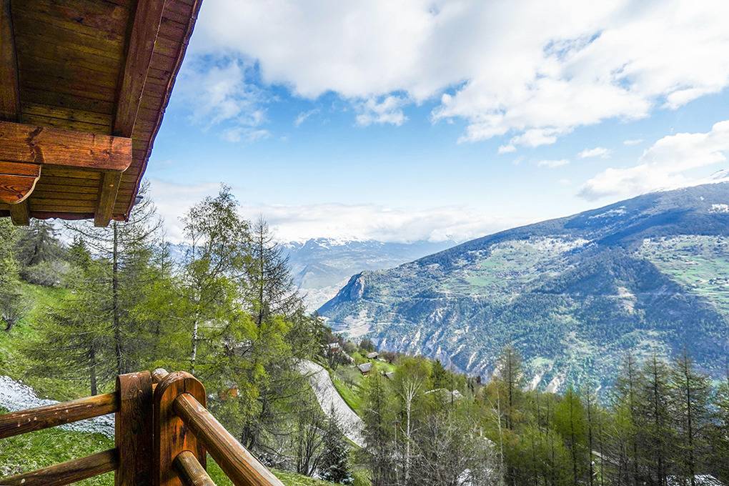 Ort: Les Masses. Ruhige Hanglage in einer Chaletsiedlung am Ortsrand. Ruhige Hanglage mit schönem Berg-Panoramablick auf Dent Blanche (4357 m) und Matterhorn (4478 m). Les Collons mit Geschäften 2,5 km. Zufahrt zum Chalet mit Winterausrüstung bis auf 30 m, danach Treppe abwärts zum Chalet. 1 Pkw-Stellplatz vorhanden.