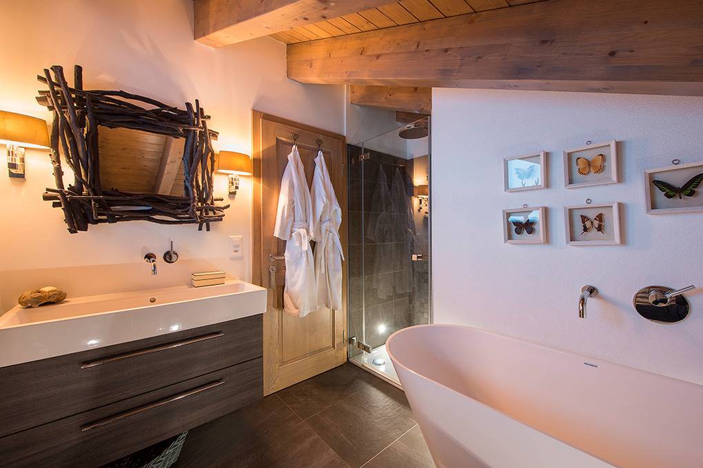 Haus: Sehr schönes Komfort-Chalet mit Dampfbad und Whirlpool. 5-Zimmerhaus mit 180 qm Wohnfläche über 3 Etagen. 4 Doppelzimmer mit individuellem Design, 4 schöne Bäder! Hochwertige, sehr gediegene Einrichtung. Gelungene Mischung aus typischem Chalet Ambiente und süd-afrikanischen Deko-Akzenten. Moderne Komfortausstattung. Internetzugang über W-Lan. Jeder Schlafraum mit Sat-TV, Apple-TV, Fön. Waschmaschine, Trockner. Schuhwärmer. Zentral-/Fußbodenheizung. Großer Balkon mit Grill, Sitz- und Loungemöbeln, Außenwhirlpool, schönem Bergblick. 2 Pkw-Stellplätze am Haus.