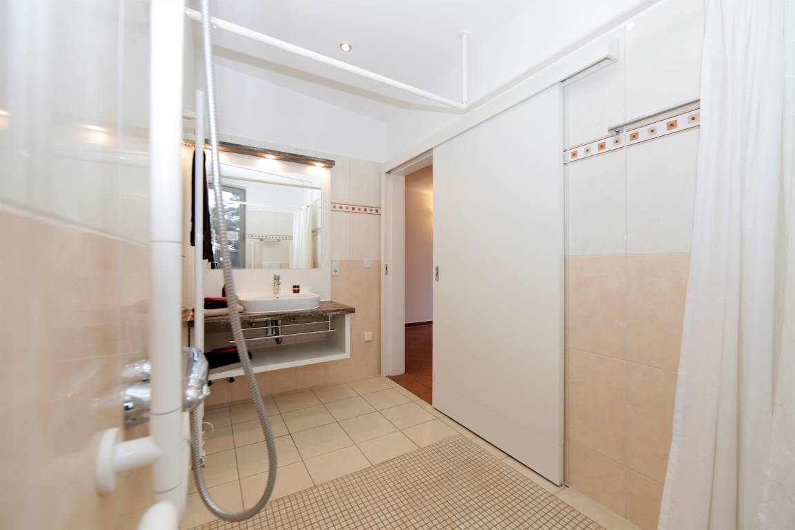 Geeignet für Personen mit Gehbehinderung: Ein Fahrstuhl bringt Sie bequem vom Erdgeschoss direkt auf die gewünschte Wohnungs- und Kellerebene mit Sauna.