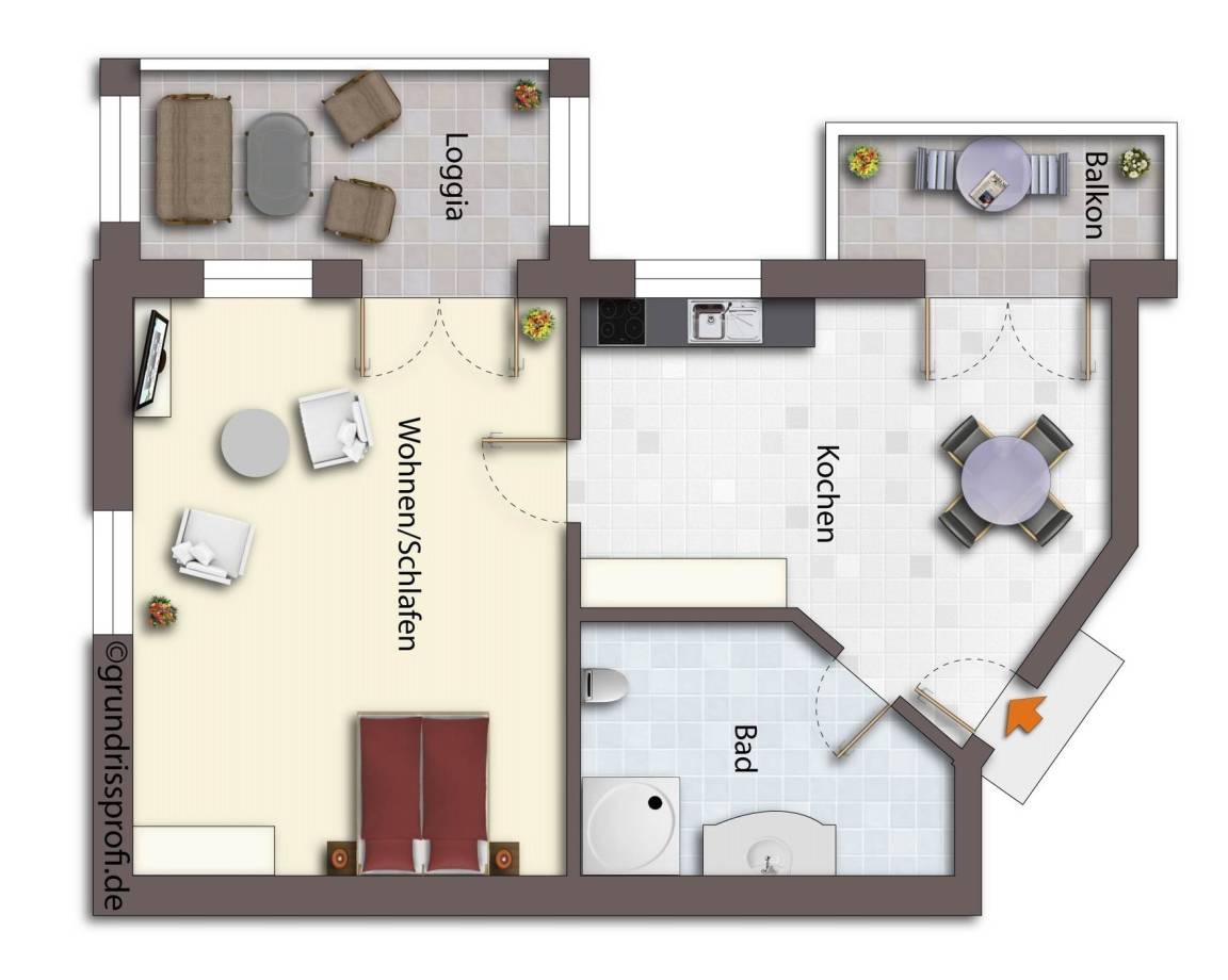 46 m² Ferienwohnung ∙ 1 Schlafzimmer ∙ 4 Gäste