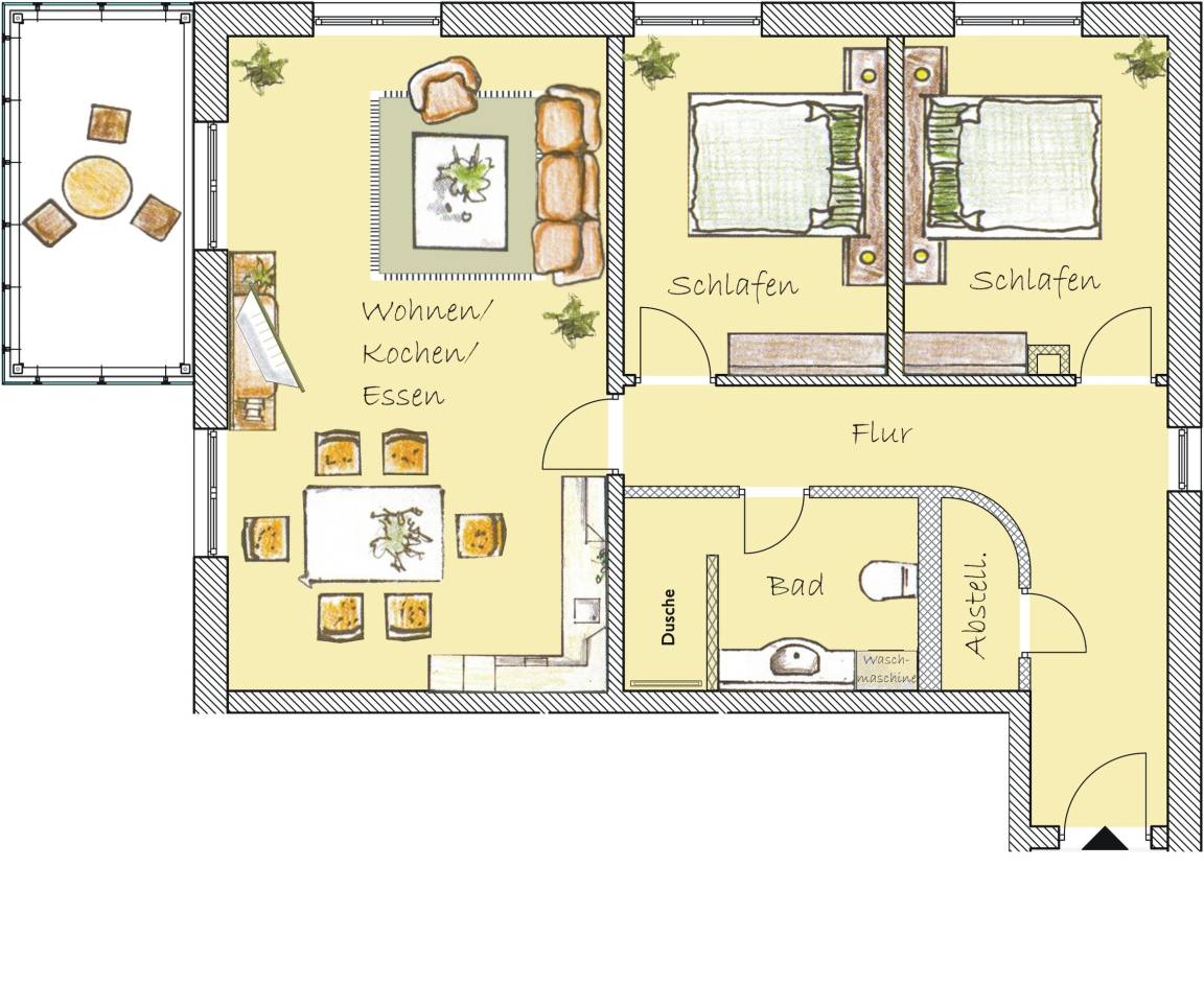 76 m² Ferienwohnung ∙ 2 Schlafzimmer ∙ 6 Gäste