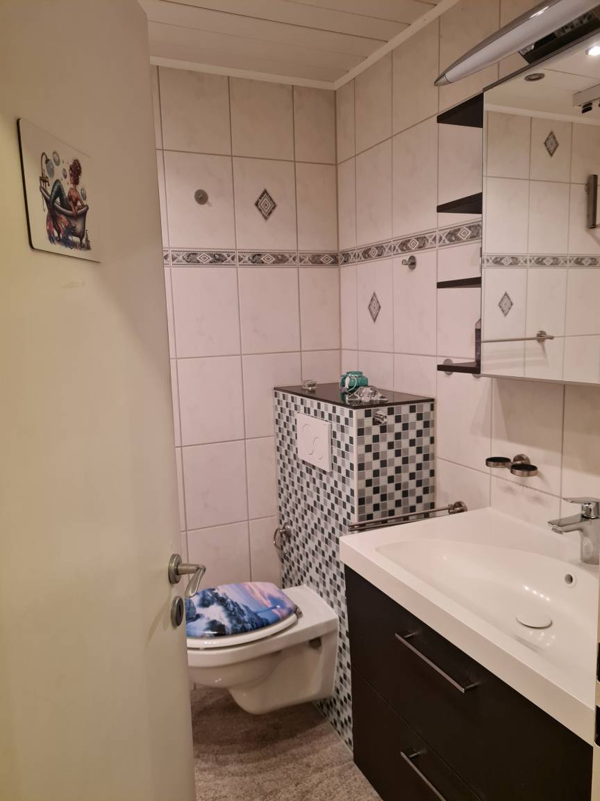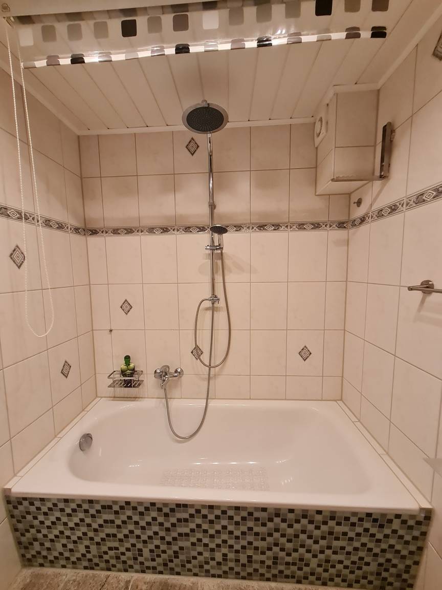 Das Highlight der Wohnung ist die große und moderne sowie sehr gut ausgestattete Küche in der man gemütlich für Zwei oder die ganze Familie kochen und backen kann um es sich anschließend im Wohnzimmer am großen Esstisch schmecken zu lassen. Um den Abend vor dem modernen Flachbildschirm mit SAT oder mit einem der vorhandenen Gesellschaftsspiele ausklingen zu lassen, finden auf den beiden gemütlichen Sofas großzügig vier Gäste Platz. Um mit den Liebsten Daheim in Verbindung zu bleiben ist selbstverständlich WLAN vorhanden. Für Regentage ist ebenfalls gesorgt, machen Sie sich mit einem der Reiseführer einen schönen Tag und planen Sie Ihren nächsten Ausflug! Bei Hitze ist die Außenjalousie auf den Balkonen für Schatten praktisch oder der Sonnenschirm! Im kleinen Badezimmer können Sie sich ein himmlisches Vollbad in der Badewanne gönnen. Ein Fön ist vorhanden.