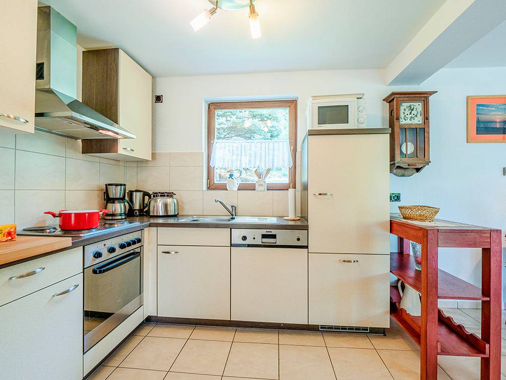 Nebenkosten 3 €/Pers./Tag (werden bei Buchung erhoben). Endreinigung 109 € (wird bei Buchung erhoben). Kurtaxe. Bettwäsche leihbar 10 €/Pers (Bestellung, wird bei Buchung erhoben). Handtücher mitzubringen. Zusätzliche Leistungen 1 Pkw-Stellplatz im Preis inklusive. Wlan inklusive (schlechter Empfang im Wald). Kinder Hochstuhl ohne Berechnung. Haustier nicht erlaubt.Räume & Aufteilung