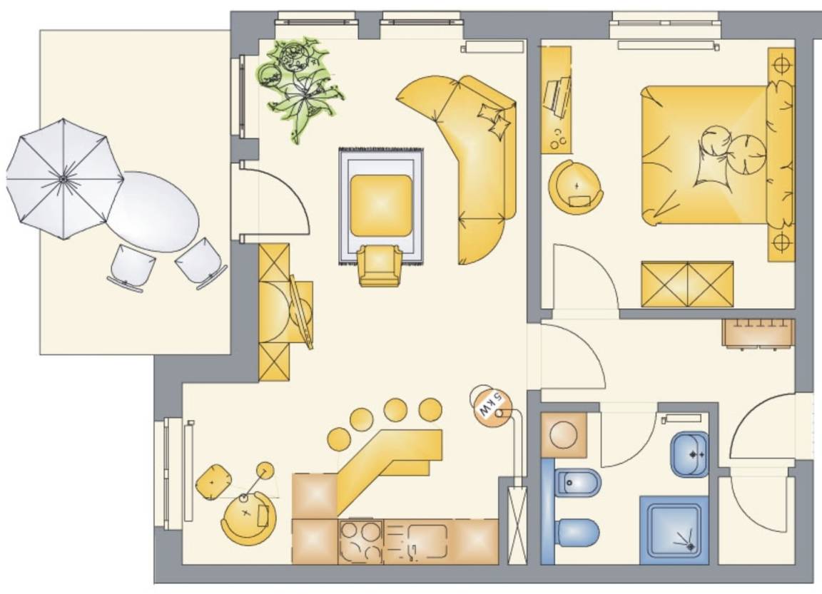 49 m² Ferienwohnung ∙ 1 Schlafzimmer ∙ 2 Gäste