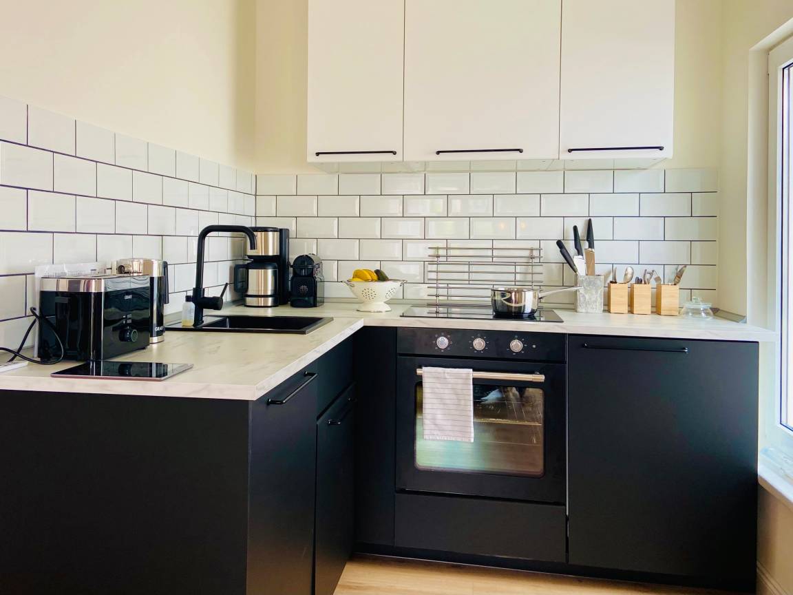 Die offene, modern ausgestattete Küchenzeile im Erdgeschoss lässt keine Wünsche offen. Mit einem 4-fach Cerankochfeld, einem geräumigen Kühlschrank mit integriertem Gefrierfach, einem Backofen und einem Geschirrspüler ist sie bestens für die Zubereitung leckerer Mahlzeiten ausgestattet. Sie verbindet Funktionalität mit stilvollem Design und bietet alles, was Sie für einen komfortablen Aufenthalt benötigen.