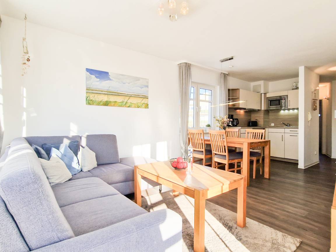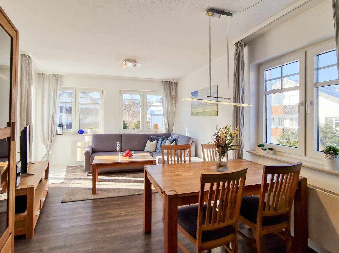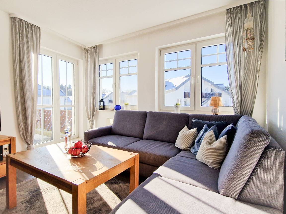 Willkommen in Ihrem Urlaubszuhause: Dieses lichtdurchflutete 3-Zimmer-Appartement im Haus 5 des Ostseeparks Bansin bietet auf 60 qm ausreichend Platz für bis zu 4 Personen. Der offene Wohnbereich lädt mit einer gemütlichen Eckcouch zum Entspannen ein und geht fließend in die modern ausgestattete Küchenzeile sowie den Essbereich über. Ein besonderes Highlight ist der Ost-Balkon, den Sie sowohl vom Wohnzimmer als auch vom Hauptschlafzimmer aus betreten können – perfekt für ein Frühstück in der Morgensonne. Zwei separate Schlafzimmer (eines mit Doppelbett und TV, eines mit zwei Einzelbetten) garantieren erholsame Nächte. Das funktionale, innenliegende Badezimmer ist mit Dusche und WC ausgestattet. Ihr privater Parkplatz befindet sich direkt auf dem Grundstück und ist fest der Wohnung zugeordnet.