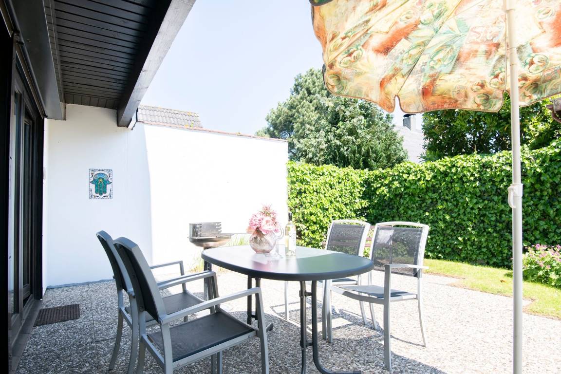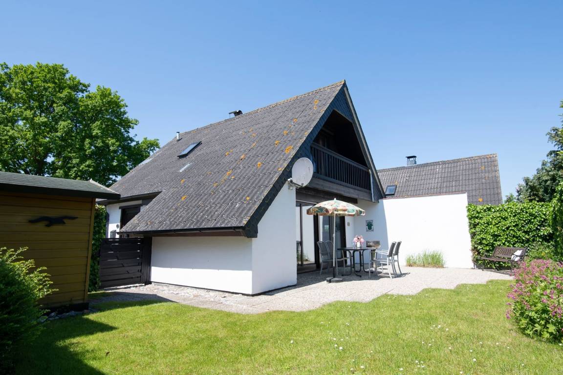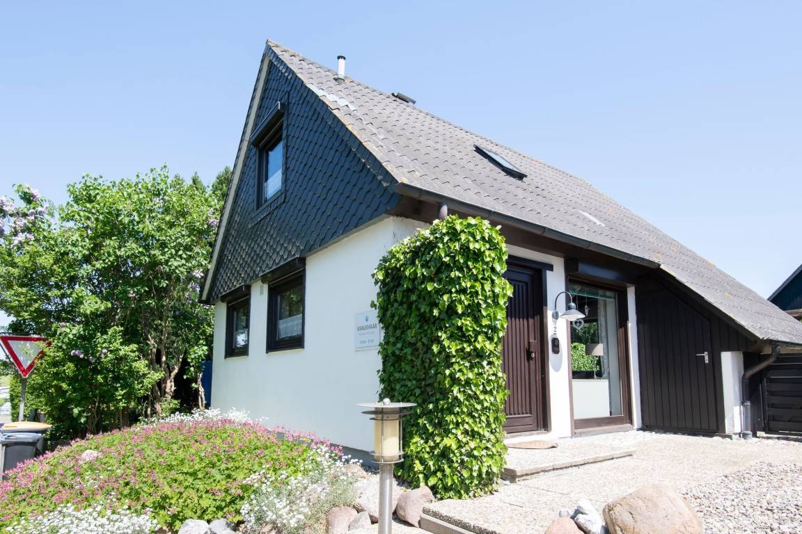 Es erwartet Sie ein eigener, nicht einsehbarer und eingezäunter Garten, eine neue, voll eingerichtete Küche, ein Wohnzimmer mit direktem Gartenzugang. Vom Wohnzimmer aus, das Sie mit einem gusseisernen Ofen empfängt, geht es hinauf zu den zwei Schlafräumen. Ein Doppelbett (2x 90x200 cm) im Schlafzimmer und zwei getrennt stehende Betten (je 90x200 cm) im Kinderzimmer sind vorhanden. Ein Kinderbett (90x200 cm) sowie ein weiteres Zustellbett erlauben den Aufenthalt einer Großfamilie. Sie parken Ihren PKW direkt am Haus auf dem für Sie reservierten PKW-Außenstellplatz und lagern Ihre Strandutensilien im Garten.