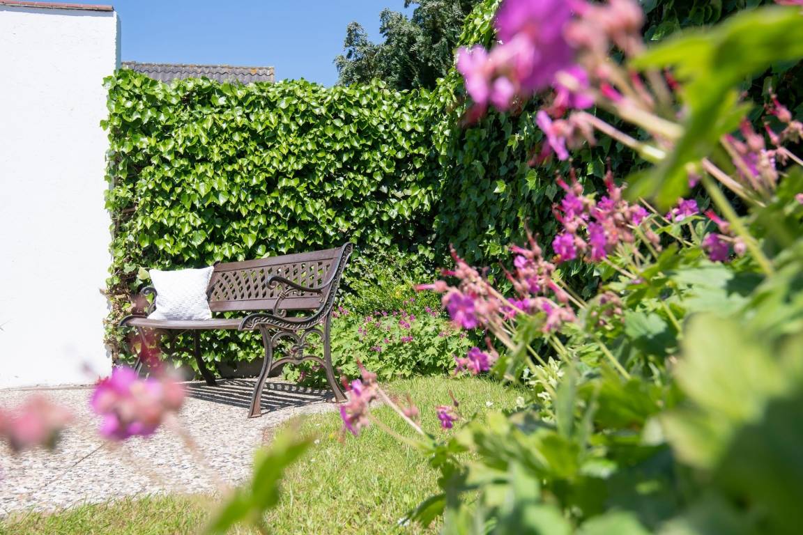 Mitgebrachte Fahrräder können im Garten blickgeschützt und sicher abgestellt werden.