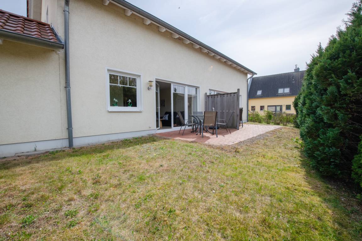Die 3-Zimmer-Ferienwohnung im Seebad Ahlbeck auf der Insel Usedom bietet auf 63 m² im Erdgeschoss den idealen Rückzugsort für bis zu 4 Personen. Ob Familienurlaub oder entspannte Tage mit Freunden, hier genießen Sie Komfort, Gemütlichkeit und eine einladende Atmosphäre. Die Wohnung verfügt über zwei separate Schlafzimmer, eines mit Doppelbett und eines mit zwei Einzelbetten, sowie einen großzügigen Wohnbereich mit moderner Küchenzeile und Essplatz. Die voll ausgestattete Küche ermöglicht eine komfortable Selbstversorgung und lädt zu gemeinsamen Mahlzeiten ein. Ein besonderes Highlight ist die gemütliche Terrasse mit direktem Zugang zum Garten, perfekt für ein Frühstück im Freien oder entspannte Stunden an der frischen Ostseeluft. Das Badezimmer ist mit Dusche und Badewanne ausgestattet und bietet zusätzlichen Komfort. Dank der ruhigen Lage und der durchdachten Ausstattung ist diese Ferienwohnung ideal für einen erholsamen und zugleich abwechslungsreichen Urlaub an der Ostsee.
