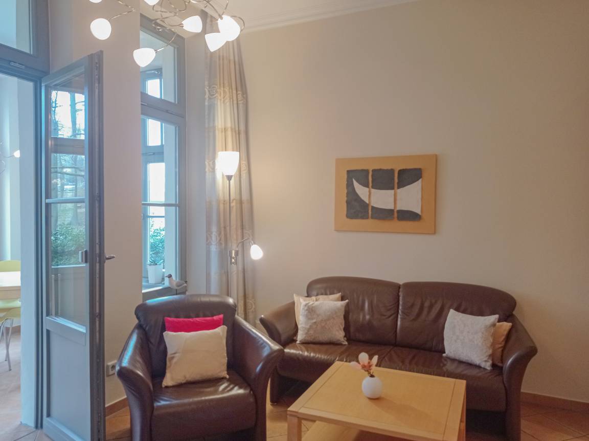 Dieses helle ca. 52 qm große 2- Zimmer Appartement liegt im Erdgeschoss und verfügt über eine Loggia sowie eine Terrasse zur Südseite, die zu jeder Jahreszeit viel Sonne versprechen. Die Lage des Hauses spricht für sich. Im Wohnraum steht den Gästen eine Couchecke mit Flat-TV und Radio/CD zur Verfügung. Offen im Wohnraum integriert befindet sich die Vollküche incl. Backofen-Ceranfeld, Geschirrspüler, Kühlschrank, Mikrowelle etc. Die Mahlzeiten können Sie in der sonnigen Loggia einnehmen. Das Schlafzimmer ist mit einem Doppelbett mit getrennten Matratzen (90 x 200) und ausreichend Schrankraum ausgestattet. Für eine dritte Person steht im Wohnzimmer ein Schrankbett zur Verfügung. Das moderne Bad ist ausgestattet mit Dusche sowie Badewanne und Waschtisch/WC. Darüber hinaus steht ein separates Gäste-WC zur Verfügung. Der Pkw-Stellplatz befindet sich auf dem Grundstück und ist der Wohnung zugeordnet. Waschmaschine und Trockner finden Sie im Keller.
