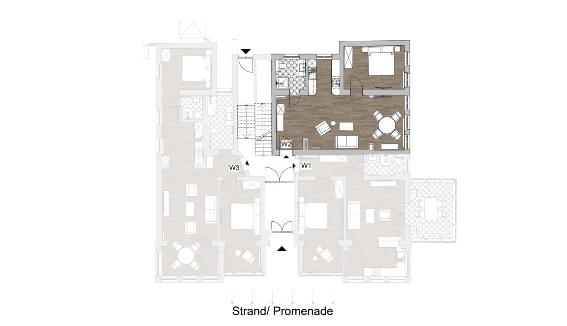 Die Wohnung "Usedomer See" ist mit 2 Zimmern und ca. 60 qm für bis zu 2 Personen großzügig ausgelegt, hell gestaltet und verfügt über eine südseitige Terrasse mit seitlich zum Meer gewandten Gartenanteil. Stilvolles und modernes Mobiliar sowie ein geschmackvolles Farbkonzept sorgen für umgehendes Urlaubsvergnügen. Der vollausgestattete Küchenbereich lädt zum gemeinsamen Kochen ein. Haustiere sind in dieser Wohnung willkommen.