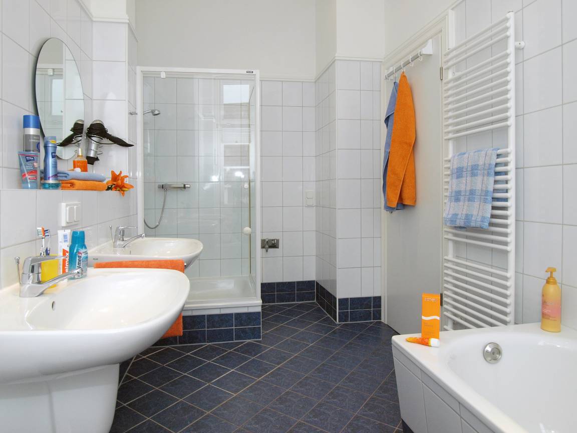 Diese Ferienwohnung für 2-5 Personen befindet sich im 1. Obergeschoss und bietet mit ihren 67 qm reichlich Platz für erholsame Ferientage. Der gemütliche Wohnraum mit viel natürlichem Licht ist mit einer Sitzgruppe und Flat TV eingerichtet. Zum Lesen und Träumen lädt der Platz in der angrenzenden, geschlossenen Loggia (Fenster lassen sich öffnen) ein, von dem aus Sie das bunte Treiben auf der Promenade beobachten sowie einen Blick über die Ostsee genießen können. Die ebenfalls an den Wohnbereich angrenzende Vollküche ist mit Cerankochfeld, Geschirrspüler, Kühlschrank, Mikrowelle etc. ausgestattet. Ein großer Essplatz lädt zu gemeinsamen Mahlzeiten ein. Zwei Schlafräume sind jeweils mit einem Doppelbett (180 bzw. 140 x 200) das dritte Schlafzimmer ist mit einem Einzelbett eingerichtet. Das große Bad ist sowohl mit Dusche als auch mit Badewanne und Doppelwaschbecken/WC ausgestattet. Der Pkw-Stellplatz befindet sich auf dem Grundstück. Für Fahrräder befindet sich lediglich ein Fahrradständer am Haus.
