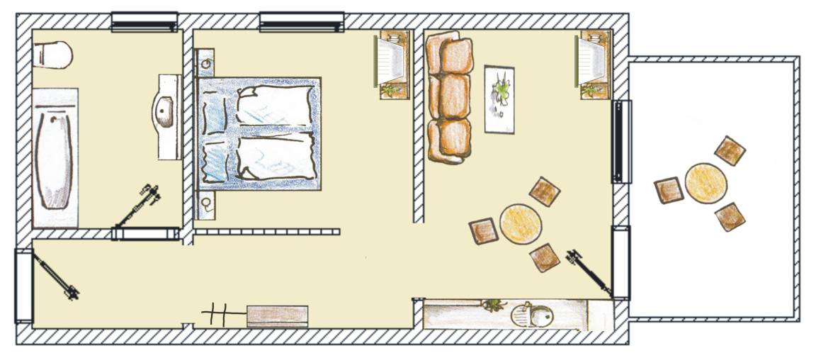 44 m² Ferienwohnung ∙ 1 Schlafzimmer ∙ 3 Gäste