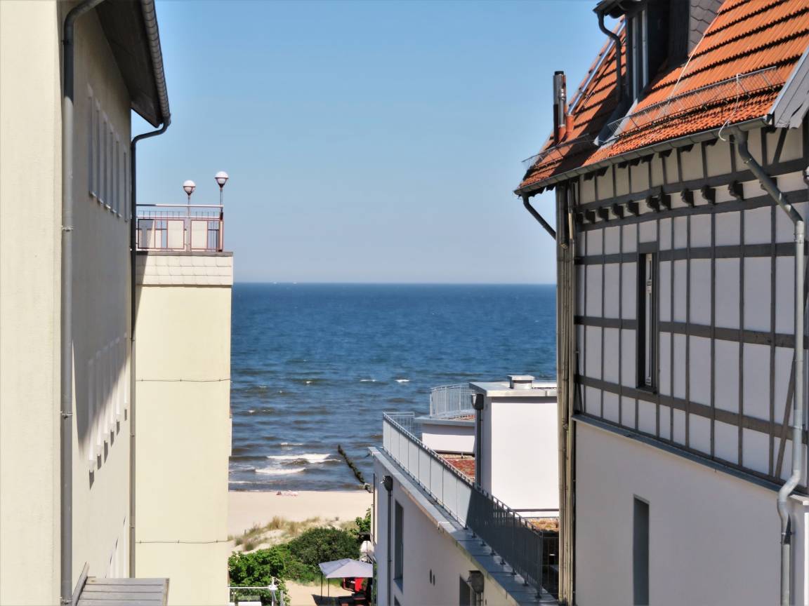 Dieses hochwertige, moderne 3-Zimmer Appartement ist 69 qm groß und befindet sich im 2. Obergeschoss. Die Wohnung mit 2 Schlafzimmern bietet 4 Personen reichlich Platz für einen erholsamen Urlaub am Meer. Im Wohnbereich erwartet Sie ein Kaminofen, eine bequeme Polstergarnitur mit Couchtisch und Flat TV. Der Essplatz am Fenster lädt zu gemeinsamen Mahlzeiten ein. Zum Frühstück begleitet Sie schon das Rauschen des Meeres. Die Küche mit Cerankochfeld, Backofen, Mikrowelle, Geschirrspülmaschine, Kühlschrank etc. ist ebenfalls offen im Wohnraum integriert. Von hier aus haben Sie zwischen den Häusern der ersten Reihe einen Blick auf den Strand und die Ostsee. Über eines der Schlafzimmer erreichen Sie den südlich ausgerichteten Balkon. Hier ist Sonne garantiert. Die Schlafzimmer verfügen jeweils über ein komfortables Doppelbett mit getrennten Matratzen (90 x 200), einen Kleiderschrank sowie Kofferablage. Eines der Schlafzimmer ist mit einem zusätzlichen TV ausgestattet. Das Badezimmer mit Fenster ist mit Badewanne, Dusche und Waschtisch/WC ausgestattet. Ein Pkw-Stellplatz, der der Wohnung zugeordnet ist, steht den Gästen vor dem Haus zur Verfügung. Der Fahrradraum als auch Waschmaschine und Trockner im Keller kann von den Gästen genutzt werden.