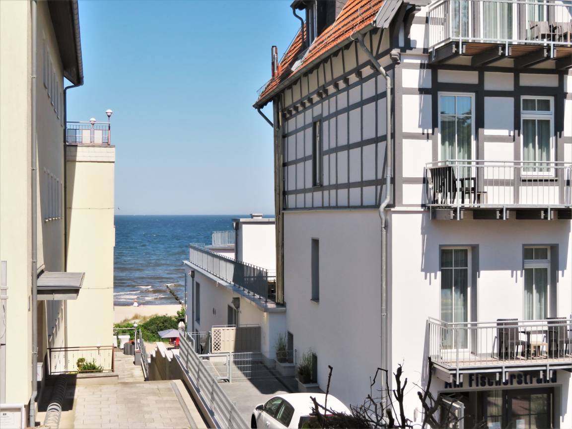 Dieses hochwertige, moderne 3-Zimmer Appartement ist 69 qm groß und befindet sich im 1. Obergeschoss. Die Wohnung mit 2 Schlafzimmern bietet 4 Personen reichlich Platz für einen erholsamen Urlaub am Meer. Im Wohnbereich erwartet Sie ein Kaminofen, eine bequeme Polstergarnitur mit Couchtisch und Flat TV. Der Essplatz am Fenster lädt zu gemeinsamen Mahlzeiten ein. Zum Frühstück begleitet Sie schon das Rauschen des Meeres. Die Küche mit Cerankochfeld, Backofen, Mikrowelle, Geschirrspülmaschine, Kühlschrank etc. ist ebenfalls offen im Wohnraum integriert. Von hier aus haben Sie zwischen den Häusern der ersten Reihe einen Blick auf die Ostsee. Über eines der Schlafzimmer erreichen Sie den südlich ausgerichteten überdachten Balkon. Hier ist Sonne garantiert. Die Schlafzimmer verfügen jeweils über ein komfortables Doppelbett mit getrennten Matratzen (90 x 200), einen Kleiderschrank sowie Kofferablage. Eines der Schlafzimmer ist mit einem zusätzlichen TV ausgestattet. Das Badezimmer mit Fenster ist mit Badewanne, Dusche und Waschtisch/WC ausgestattet. Ein Pkw-Stellplatz, der der Wohnung zugeordnet ist, steht den Gästen vor dem Haus zur Verfügung. Der Fahrradraum als auch Waschmaschine und Trockner im Keller kann von den Gästen genutzt werden.