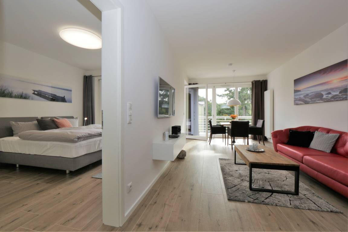 Die moderne, liebevoll eingerichtete Ferienwohnung mit 57 m² Wohnfläche befindet sich im 2. Obergeschoss der Strandresidenz. Auf dem großen überdachten Ostbalkon, ausgestattet mit Gartenmöbeln, genießen sie schon zum entspannten Frühstück die Sonne. Die Wohnung ist individuell und komfortabel ausgestattet und bietet 2 Personen Platz für einen erholsamen Urlaub am Meer.