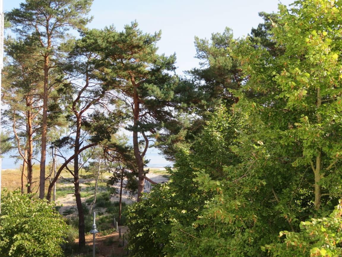 Beste Lage mit Meerblick, durch die Kiefern auf der Düne zeigt sich das Meer, Meeresrauschen und Sonnenaufgang inklusiv.
