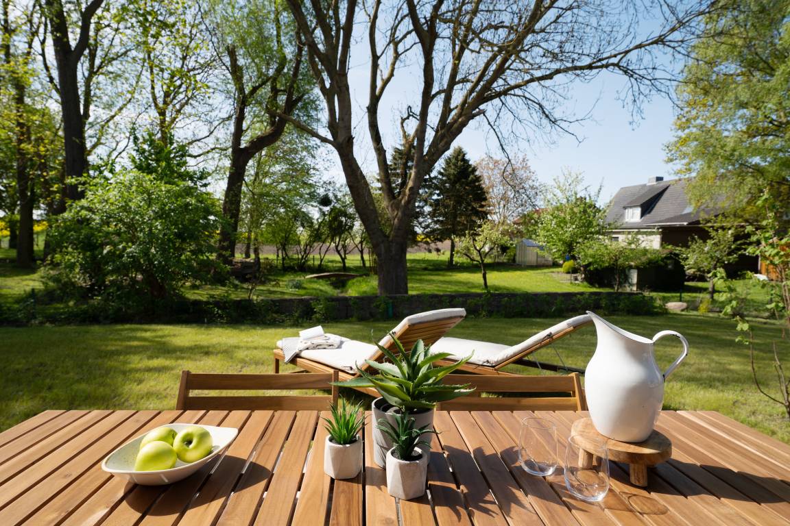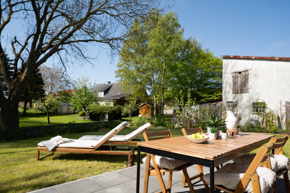 Strandnahe 3-Zimmer-Ferienwohnung in Süssau mit 78 m² Wohnfläche, Terrasse und Garten für bis zu 4 Personen.