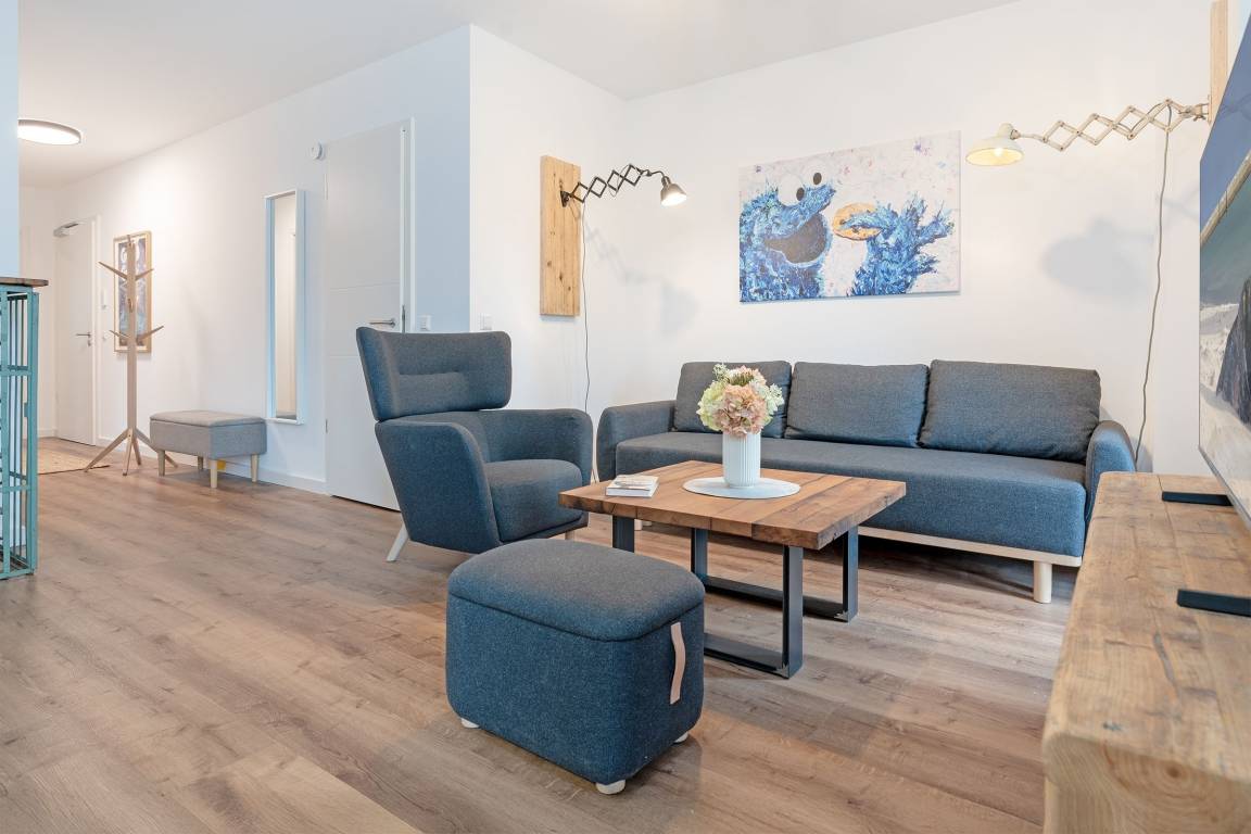 Diese traumhafte Ferienwohnung bietet alles für einen erholsamen Urlaub an der Ostsee. Der einladende Wohnbereich ist gemütlich und zugleich stylisch eingerichtet und verfügt über einen Fernseher sowie ein bequemes Sofa zum Entspannen. Durch die große Glastür gelangen Sie auf die südwestlich ausgerichteten Terrasse mit Gartenmöbeln und einem Grill – perfekt für sonnige Nachmittage und gesellige Abende im Freien. Die offene Küche ist bestens ausgestattet mit Induktionsherd, Backofen, Kühlschrank mit Gefrierfach und einer Kaffeemaschine. Der angrenzende Essbereich lädt zu gemeinsamen Mahlzeiten ein. Die Ferienwohnung verfügt über zwei Schlafzimmer: eines mit einem Doppelbett (180x200 cm) und ein weiteres mit zwei Einzelbetten (je 90x200 cm). Beide Zimmer bieten ausreichend Stauraum. Das moderne Badezimmer ist mit einer bodengleichen Dusche, Fußbodenheizung und einem beheizbaren Handtuchhalter ausgestattet, um zusätzlichen Komfort zu bieten. Erleben Sie entspannte Tage in Süssau und genießen Sie die Nähe zur Ostsee in dieser charmanten Ferienwohnung!