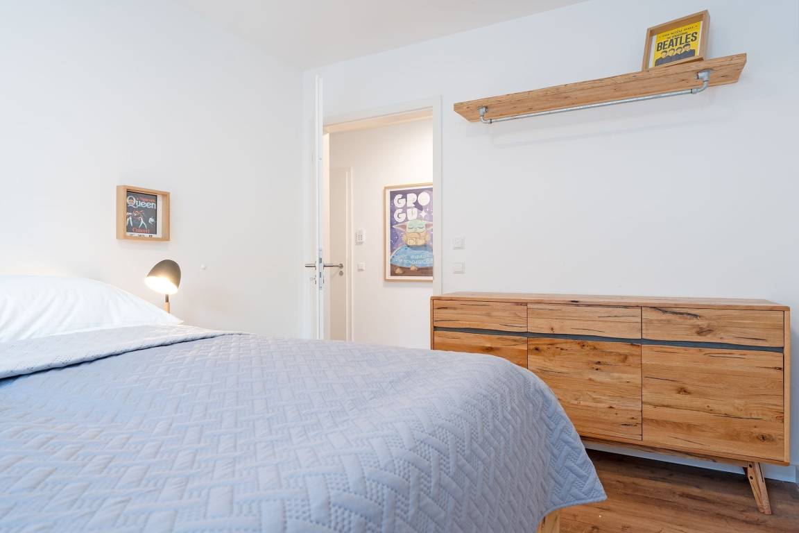 Schlafzimmer 1: 1 Doppelbett (180x200 cm), Kleiderschrank, Verdunkelung: Rollo, Platz für ein Babybett vorhanden