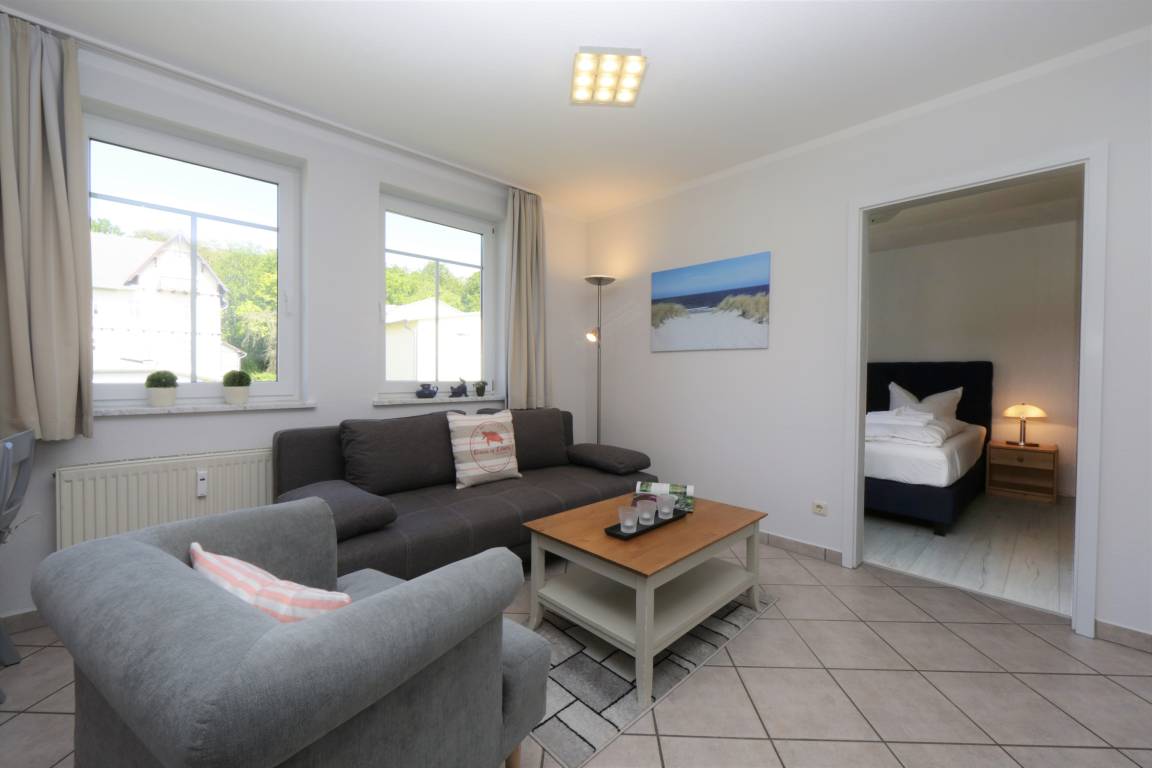 Das liebevoll und gemütlich eingerichtete 45 qm große 2-Zimmer Appartement liegt im 1.Obergeschoss und eignet sich für 2-4 Personen. Im Wohnraum finden Sie eine gemütliche Couch, welche gleichzeitig die Aufbettung für die 3. und 4. Person darstellt. Die offene Vollküche ist ausgestattet mit Cerankochfeld, Kühlschrank und Mikrowelle etc.. An dem Essplatz im offenen Wohnbereich finden Sie Platz für gemeinsame Mahlzeiten. Der möblierte Balkon ist vom Wohnraum begehbar und verspricht erholsame Sonnenstunden im Freien. Das Schlafzimmer ist mit einem Boxspringbett (180x200) und genügend Schrankraum ausgestattet. Im Bad stehen Ihnen Badewanne mit Duschabtrennung sowie Waschbecken/ WC zur Verfügung. Ein PKW-Stellplatz befindet sich in der Tiefgarage (Einfahrthöhe 2 m) und ist der Wohnung zugeordnet. Ihre Fahrräder können Sie gerne in der Tiefgarage unterstellen. Waschmaschine und Trockner stehen im Keller zur Nutzung (gegen Gebühr) bereit.