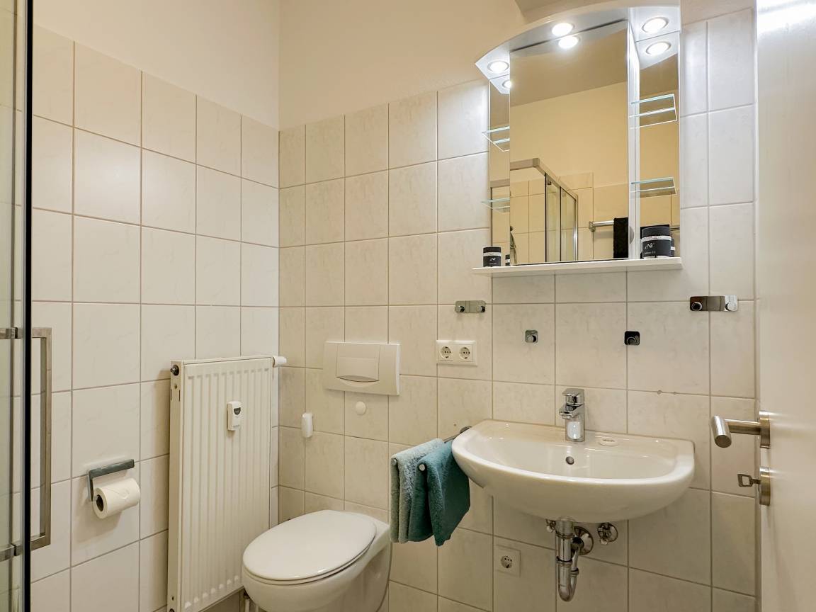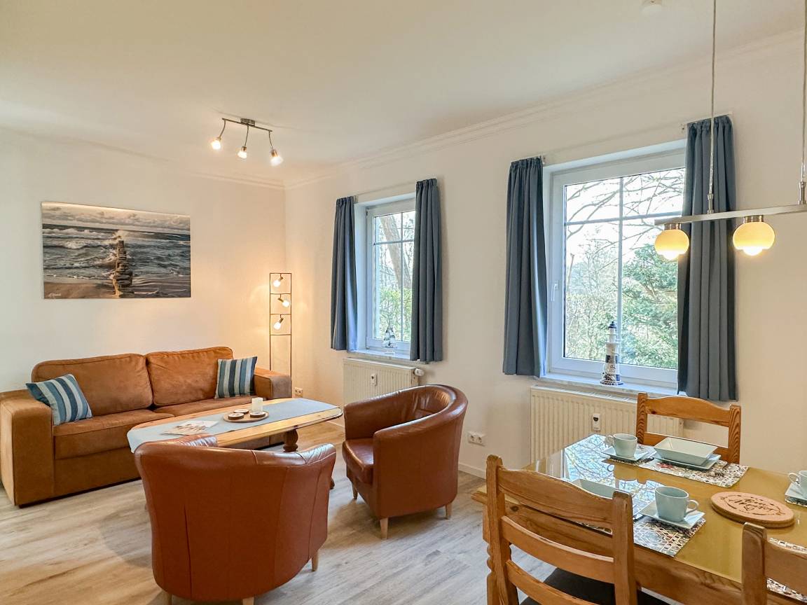 Dieses 45 qm große gemütliche 2-Zimmer-Appartement für 2 Personen befindet sich im Erdgeschoss und bietet Ihnen einen schönen Blick in den Buchenpark von Heringsdorf. Im Wohnraum steht den Gästen ein Sofa und zwei Sessel sowie ein Essplatz für gemeinsame Mahlzeiten zur Verfügung. TV, Radio/CD und DVD Player sind selbstverständlich. Die im Wohnraum offen integrierte Einbauküche mit Fenster verfügt über ein Cerankochfeld, Geschirrspüler, Kühlschrank mit Gefrierfach, Backofen etc. Das Schlafzimmer ist mit einem Doppelbett mit getrennten Matratzen (90 x 200), einen Fernseher und ausreichend Schrankraum ausgestattet. Für einen erholsamen Schlaf lassen sich die Fenster im Schlaf- und Wohnbereich verdunkeln. Den geschützten Balkon zum Süd-Westen können Sie über das Wohn- als auch das Schlafzimmer betreten. Hier kann der Blick durch den alten Baumbestand bis über den Teich schweifen. Genießen Sie die ruhige Atmosphäre auf der Rückseite der Delbrückstraße. Das innenliegende Bad ist mit einer Dusche und Waschbecken/WC ausgestattet. Ein Pkw-Stellplatz befindet sich auf dem Nachbargrundstück. Zum Be- und Entladen steht ein Platz vor dem Haus zur Verfügung. Fahrräder können im Fahrradkeller abgestellt oder im überdachten Fahrradständer angeschlossen werden.