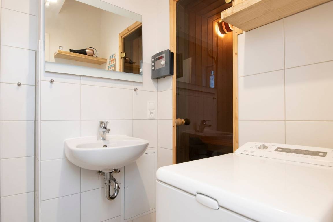 Im Erdgeschoss empfängt Sie ein großzügiger Wohn-/ Essbereich mit gemütlicher Schlafcouch, 2 Sessel und perfekt integrierter Küche, die keine Wünsche offenlässt. Ihre frisch geangelten Fische können Sie bequem im extra großen Gefrierfach lagern. Kreieren Sie köstliche Gerichte mit regionalen Zutaten und genießen Sie entspannte Abende auf der großen Holzterrasse oder vor dem Kamin mit wärmendem Feuer. Erholsame Wärme bietet zudem die Sauna, die für Entspannung der Muskulatur sorgt. In dieser Etage befindet sich außerdem das moderne Badezimmer mit Dusche. Das 1. Obergeschoss bietet Ihnen 2 komfortable Schlafzimmer für erholsame Nächte. Eins ausgestattet mit einem Doppelbett, das Andere mit 2 Einzelbetten. Das hell geflieste und moderne Gäste-WC mit Fenster vervollständigt diese Etage. Vom gemütlichen Südbalkon aus können Sie sogar zeitweise einen Blick auf die Ostsee erhaschen. Der Glasfaser WLAN-Anschluss ist selbstverständlich inklusive.
