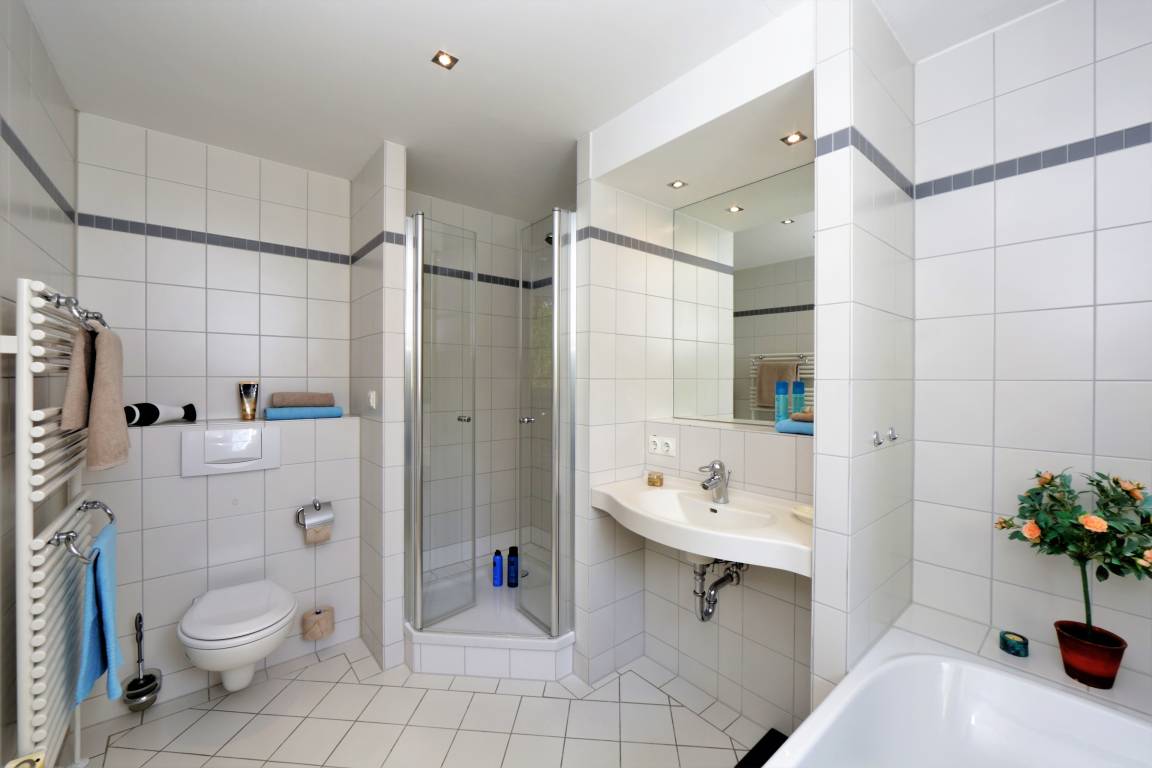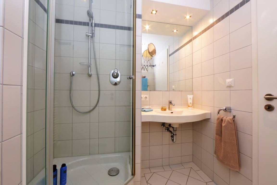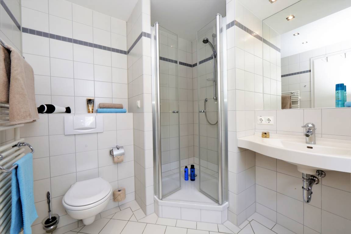 Dieses außergewöhnliche Appartement besticht nicht nur durch seine 1A Lage, sondern auch durch seine geschmackvolle und hochwertige Ausstattung. Erreichen können Sie dieses 111 qm große 3-Zimmer Appartement in der 3. Etage über einen Fahrstuhl. Sie betreten die Wohnung über einen kleinen Vorraum mit Garderobe und können durch die Glastür bereits den großzügigen Wohnbereich einsehen. Im Wohnraum erwartet Sie eine opulente Leder-Sitzgarnitur, Flat-TV und Radio/CD. Die große CD-Sammlung ist breit gefächert. Im Erker desselben Raumes steht ein Esstisch für 4 Personen, der zu Mahlzeiten in gemütlicher Atmosphäre einlädt. Zubereiten können Sie die Mahlzeiten in der vom Wohnraum abgehenden, separaten Küche mit einem Fenster. Die moderne Vollküche verfügt über alle Annehmlichkeiten wie Backofen mit Induktionsfeld, Geschirrspüler, Kühlschrank, Mikrowelle etc. Das Highlight dieser Wohnung ist die ca. 40 qm große Dachterrasse zur Seeseite von der aus Sie die Ostsee erahnen können. Mit ihrer ganzjährigen Bepflanzung stellt die Terrasse eine kleine Oase dar. Der Größe der Terrasse ist es zu verdanken, dass sie trotz ihrer Ausrichtung lange von der Sonne verwöhnt werden. Lassen auch Sie sich verwöhnen! Diese Wohnung verfügt darüber hinaus über zwei geräumige Schlafzimmer, ausgestattet mit jeweils einem Doppelbett mit getrennten Matratzen (100 x 200) und reichlich Stauraum. Den Schlafzimmern ist jeweils ein Bad zugeordnet, das mit Dusche und Waschtisch/WC ausgestattet ist. Das größere Bad bietet zusätzlich eine Badewanne. Der gesamte Wohn- und Schlafbereich ist mit Echtholzparkett ausgelegt. Ein Stellplatz für Ihr Fahrzeug befindet sich auf dem Grundstück und ist der Wohnung zugeordnet. Waschmaschine, Trockner und Fahrradabstellraum finden Sie im Keller.