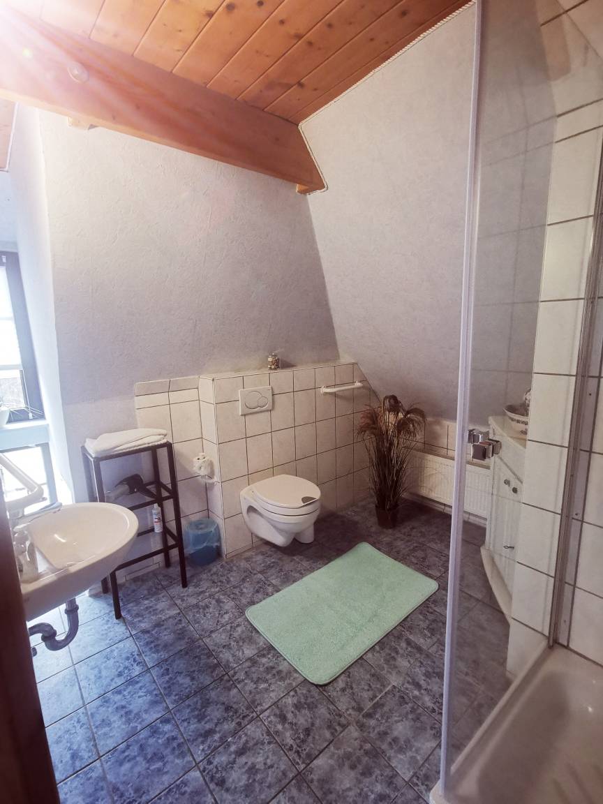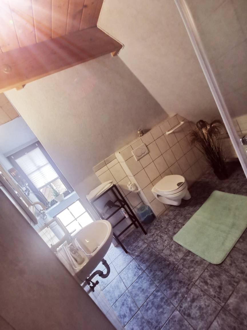 Es gibt zwei Badezimmer, beide mit Dusche,WC und Waschbecken. Bettwäsche und Handtücher können gegen einen Aufpreis mit gebucht werden oder auch gerne selber mitgebracht werden. Eine Waschmaschine und Trockner stehen zur Verfügung.