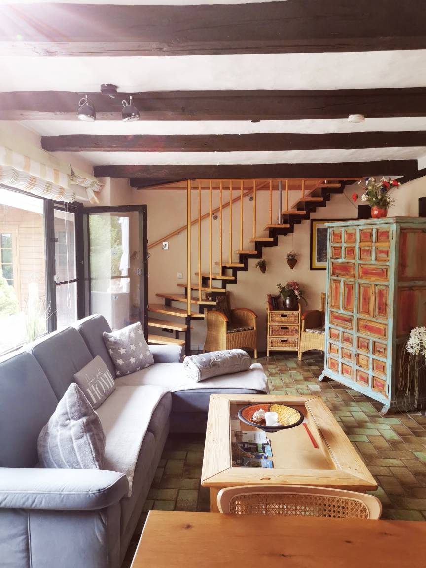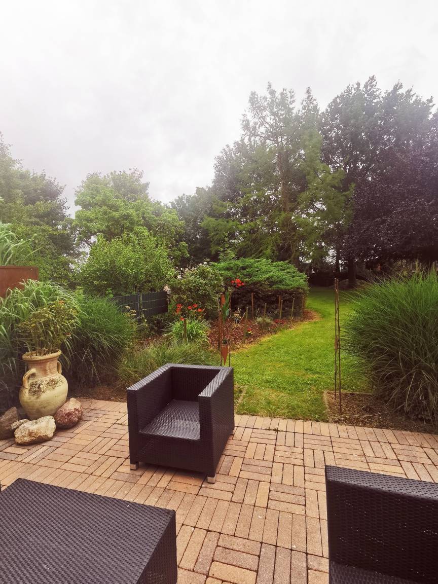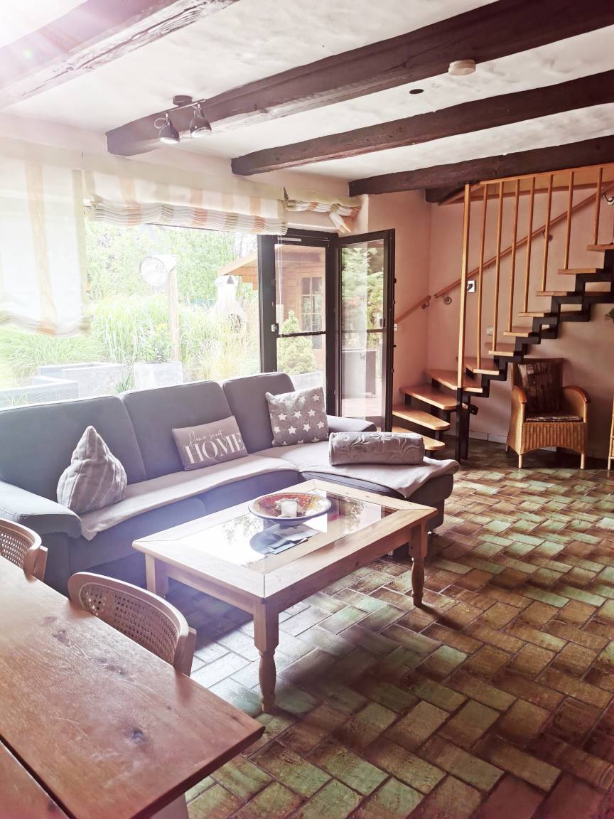 Eine moderne Küche, ein großer Essbereich, ein gemütliches Wohnzimmer mit tollem Blick in den großen Garten. Dieser und die große Terrasse laden zum Relaxen ein.