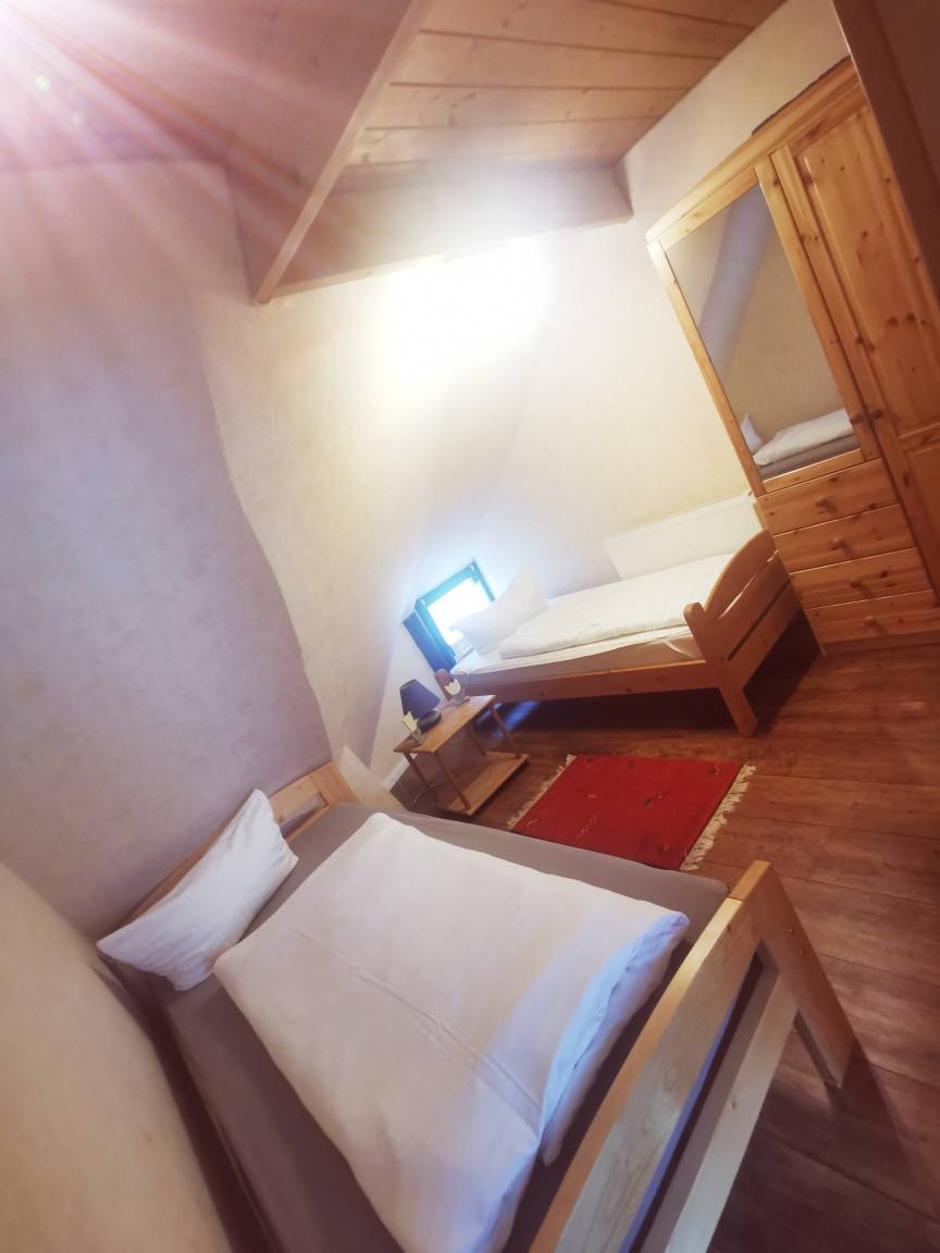 Ein Schlafzimmer mit Doppelbett (180x200cm) im 1. OG (Durchgangszimmer) , ein Zimmer mit zwei Einzelbetten(90x200cm) auch im 1.OG und ein Zimmer mit einem Futon-Bett(140x200cm) im EG. Das Wohnzimmer bietet noch eine Schlafcouch. Somit gibt es Schlafmöglichkeiten für 6 Personen.