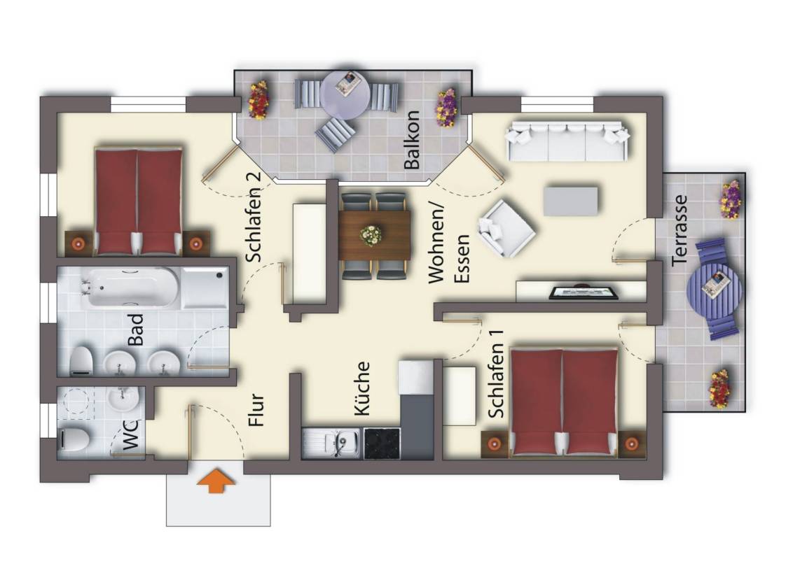 67 m² Ferienwohnung ∙ 2 Schlafzimmer ∙ 4 Gäste